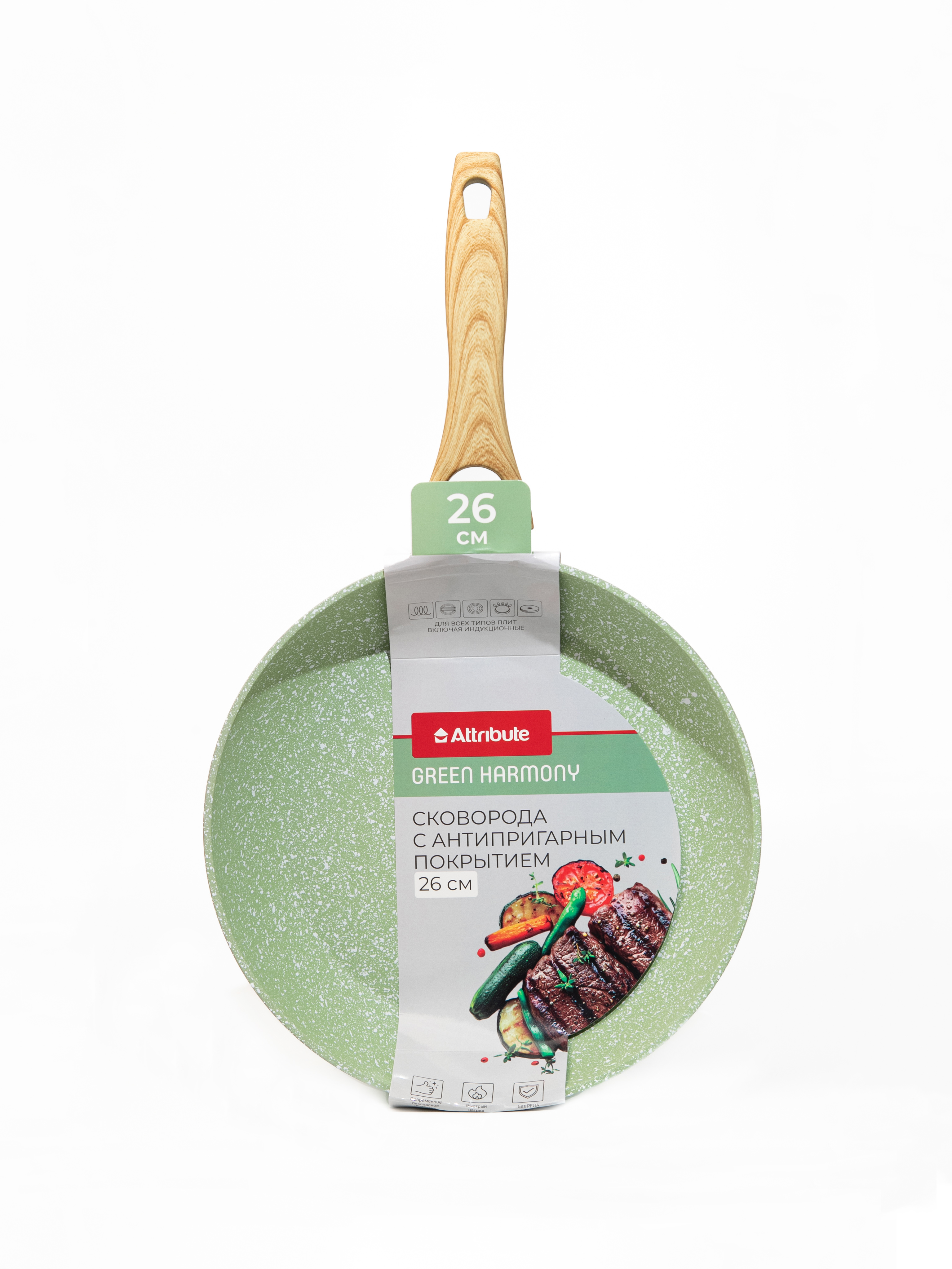 Сковорода серии GREEN HARMONY изготовлена из кованого алюминия. Имеет особо прочное и износостойкое двухслойное антипригарное покрытие DIAMOND. Верхний слой покрытия обеспечивает высокие антипригарные свойства и легкость очистки сковороды. Нижний слой прочно фиксирует антипригарное покрытие на поверхности посуды. Можно готовить пищу с добавлением малого количества масла или без него, подходит для ежедневного использования. Безопасное покрытие. Покрытие не содержит PFOA, свинца и кадмия, соответствует нормам на материалы, контактирующие с пищей. Подходит для всех типов плит, включая индукционные. Удобная ручка из термостойкого бакелита с покрытием soft-touch не выскальзывает из рук, не нагревается, имеет отверстие для подвешивания