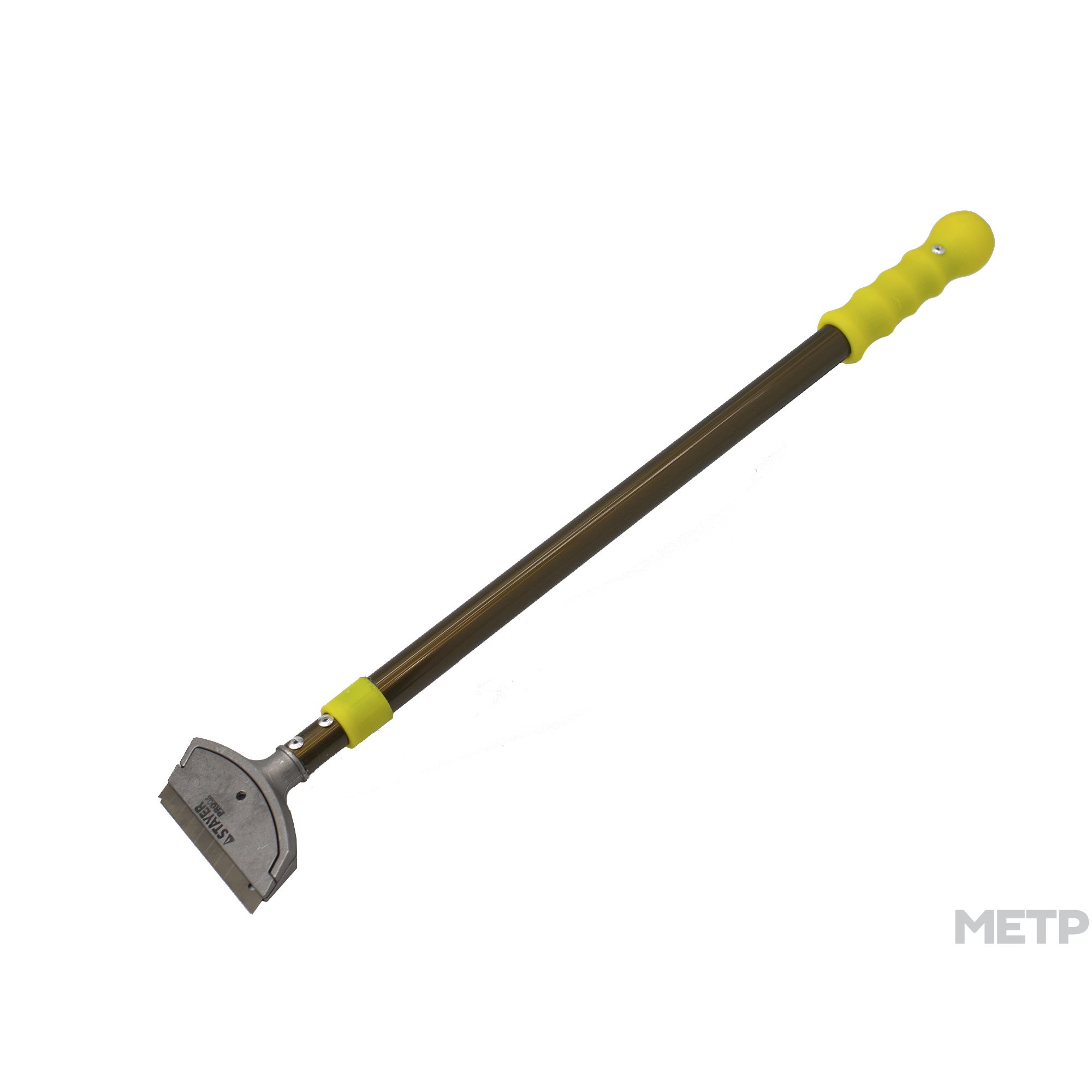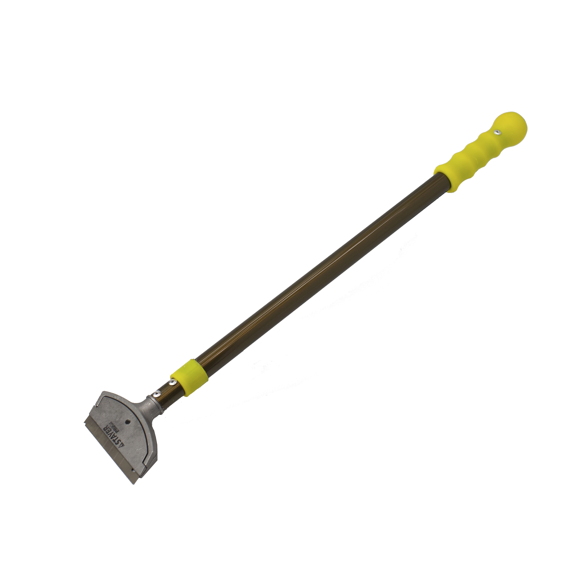 Скребок пластмассовый телескопический 570-910мм аккуратно счищает разного рода загрязнения со стекла, керамических изделий, а также с кафельного пола, не повреждая при этом поверхность. Выдвижной стержень позволяет производить соскабливание в труднодоступных местах (например, при наружной очистке окон в крупных офисных зданиях). Приспособление обладает эргономичной пластмассовой рукояткой, повторяющей форму руки. Сам скребок изготовлен из металла, а его сменное лезвие - из нержавеющей стали.