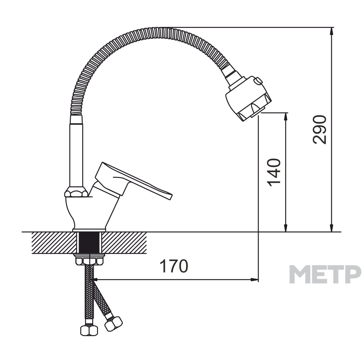 - Излив: высокий, гибкий, поворотный (360°), высота – 290 мм