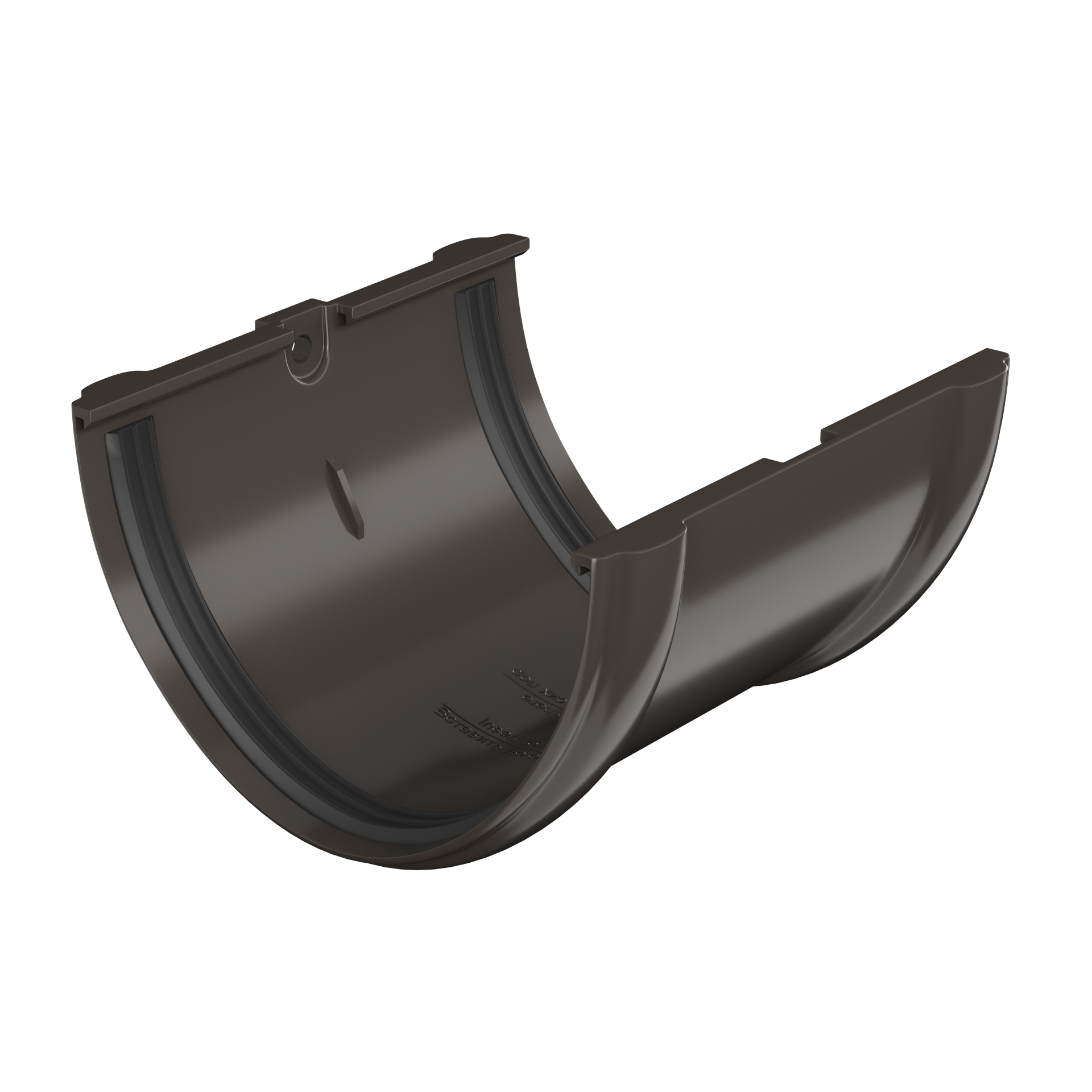 Соединитель желоба предназначен для соединения водосточных желобов в единую систему обеспечивает герметичность соединения. Крепление соединителя желоба к лобовой доске дает конструкции дополнительную жесткость, монтаж элемента не требует дополнительных кронштейнов желоба.