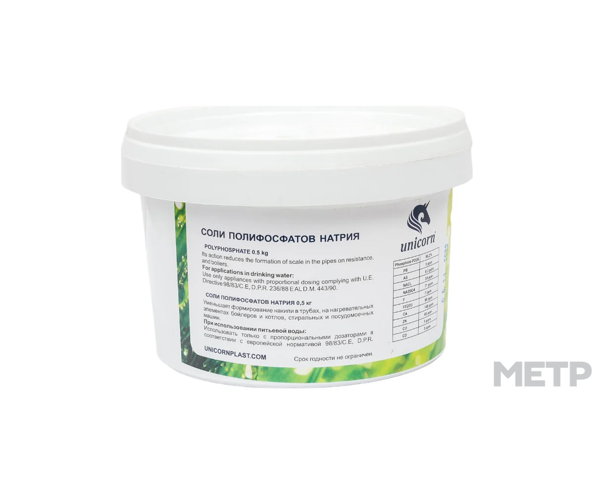 Соль полифосфат 500 гр Барьер применяется для умягчения технической воды. Снижает вероятность образования накипи в стиральных машинах, котлах и водонагревателях. Нельзя использовать для умягчения питьевой воды.