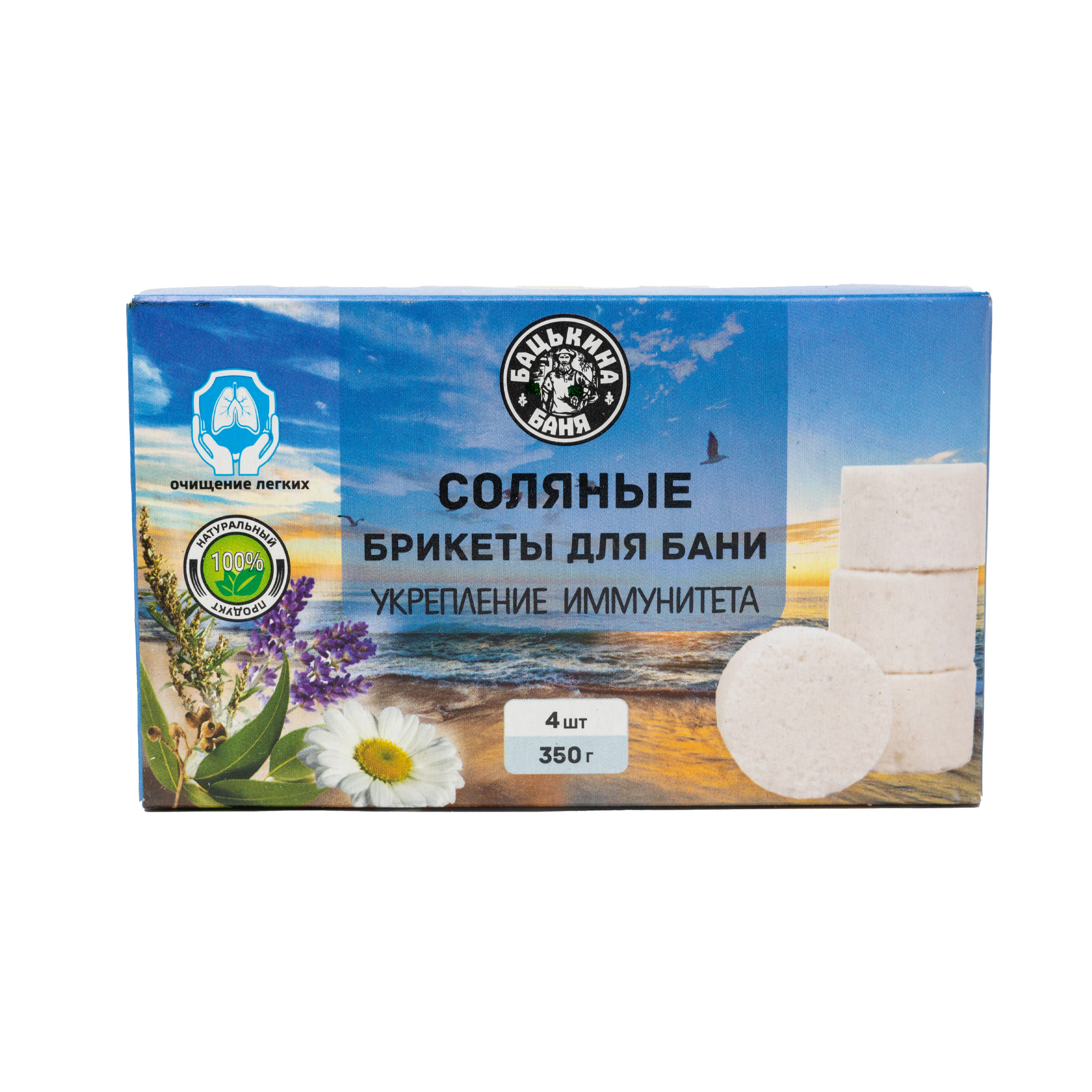 Соляной брикет 0,5 кг Укрепление иммунитета содержит в составе эфирные масла эвкалипта, полыни, лаванды, ромашки, которые наполняя парную приятным ароматом, усиливают оздоровительный эффект бани. Регулярное использование соляного брикета укрепляет иммунитет, улучшает сон, омолаживает организм, помогает справиться с головной болью, усталостью и частыми простудами.