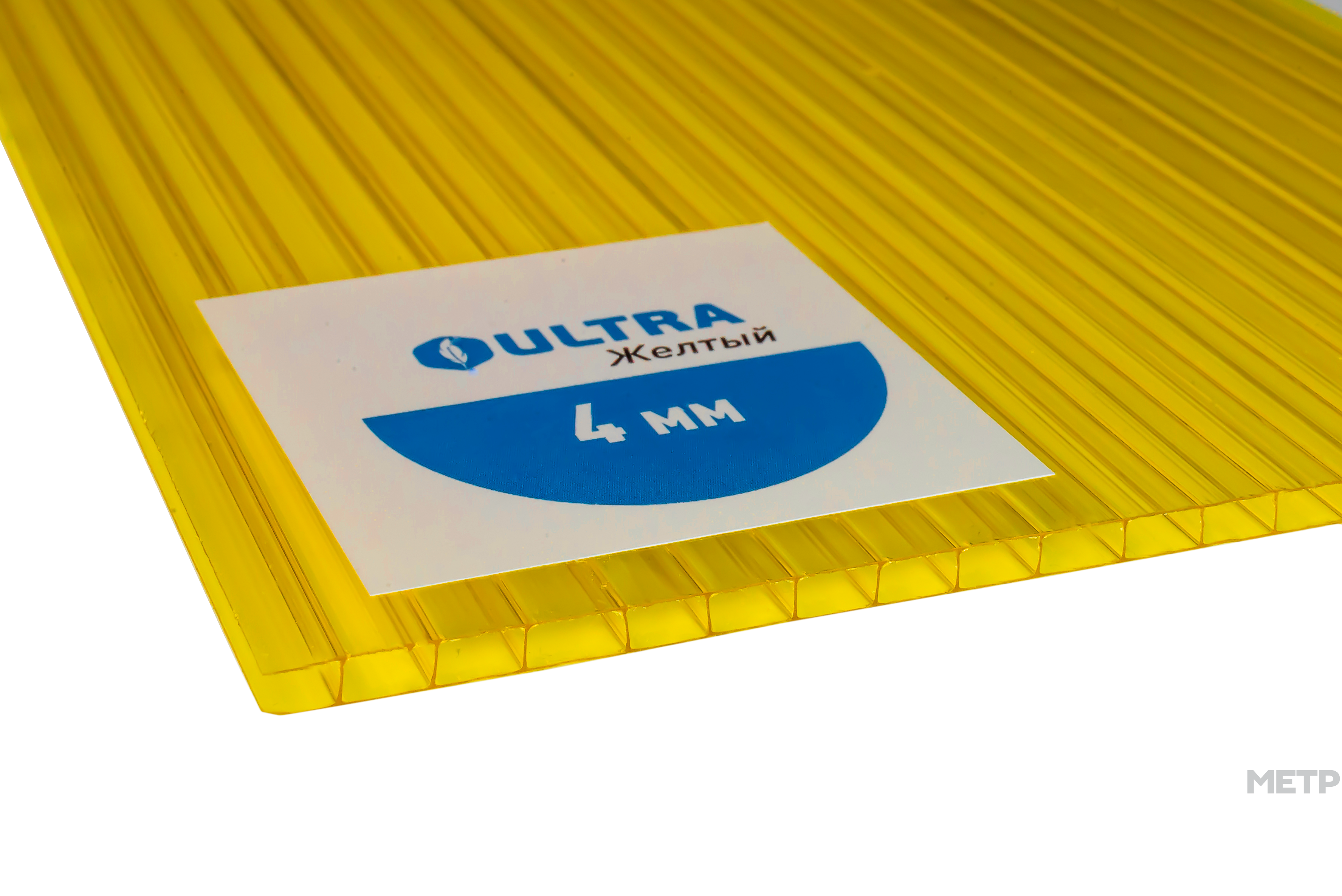Сотовый поликарбонат Ультра жёлтый 6000х2100х4 мм