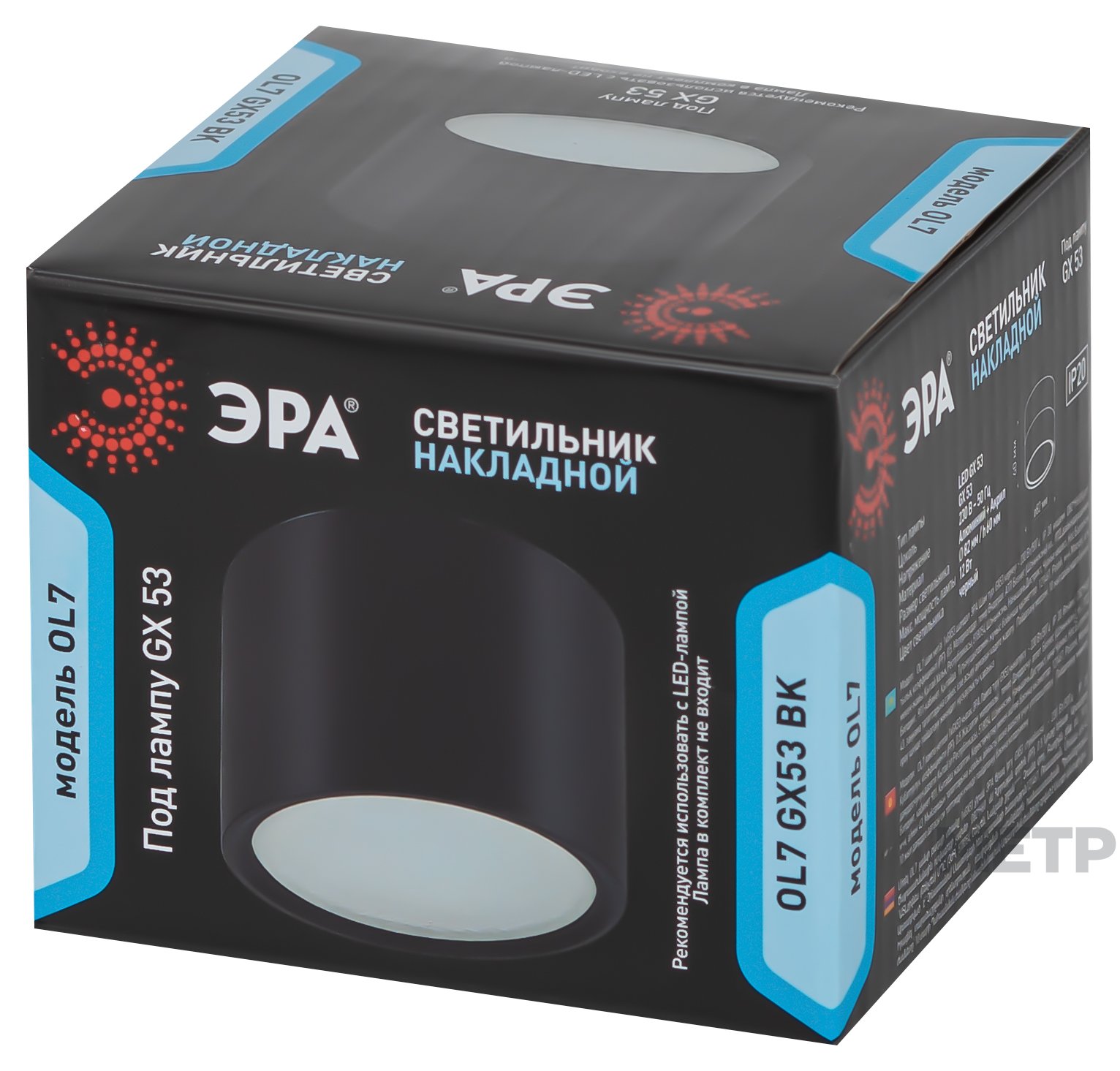 Спот ЭРА OL7 накладной неповоротный GX53 черный применяется для акцентного освещения и светового зонирования помещений. Может так же использоваться как основной источник света. Универсальный дизайн и небольшой размер светильника позволяют устанавливать его в помещениях любых типов и предназначений. Создает уютную и комфортную обстановку.