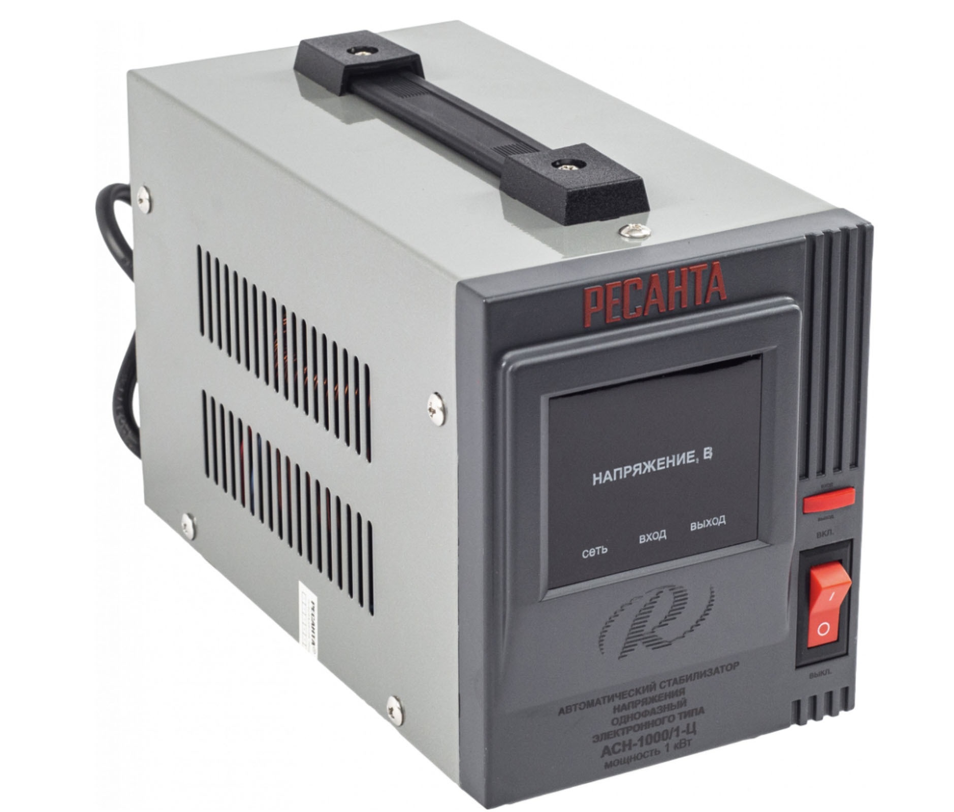 Стабилизатор напряжения Ресанта АСН-1000/1-Ц 1кВт напольный для бытовой техники (диапазон входного напряжения 140-260 В) — полезное устройство для загородных домов, если электросеть работает нестабильно. Он защитит ваши электроприборы мощностью до 1 кВт, чувствительные к скачкам напряжения: холодильник, газовый котел и другие. Сделано в Китае. Гарантия 1 год.