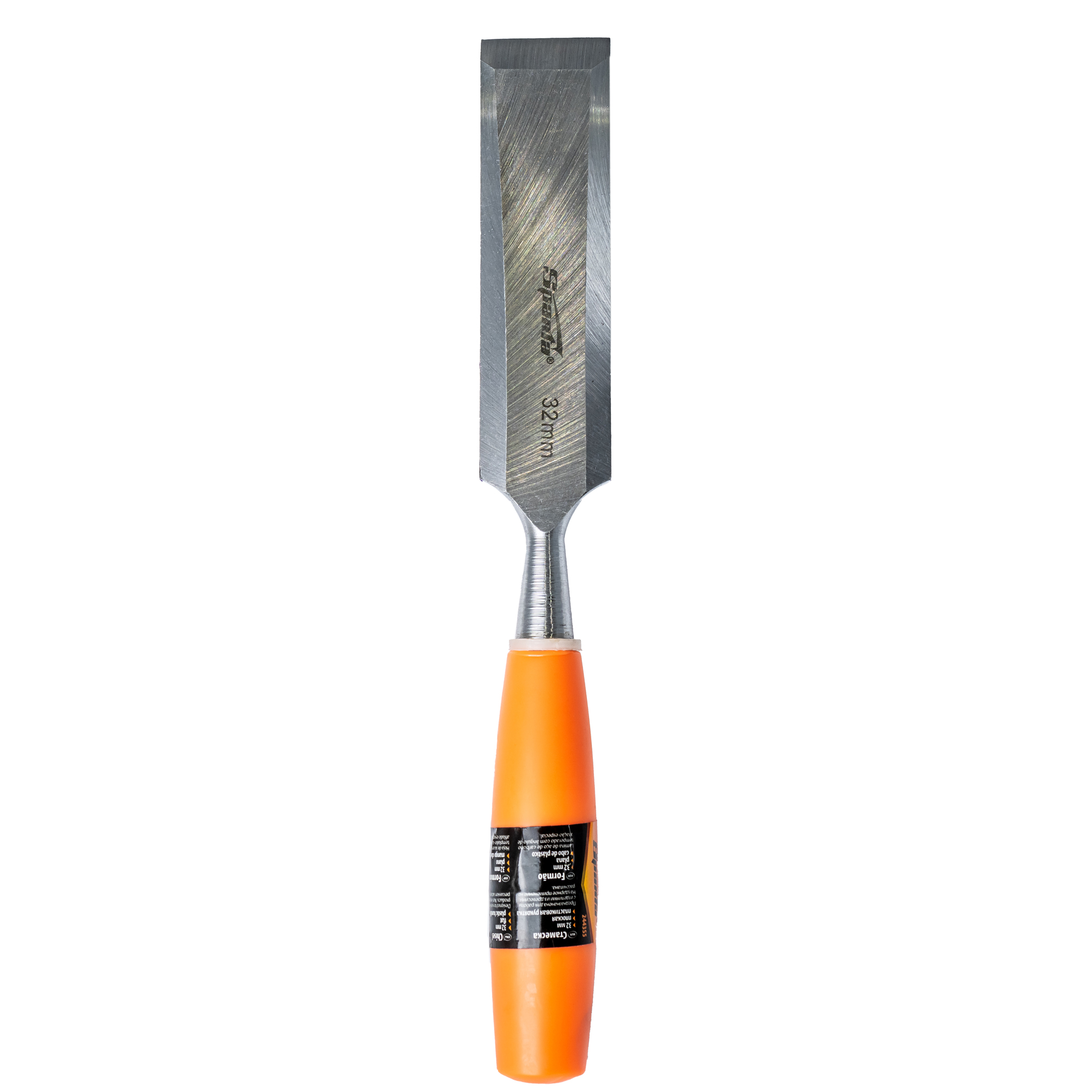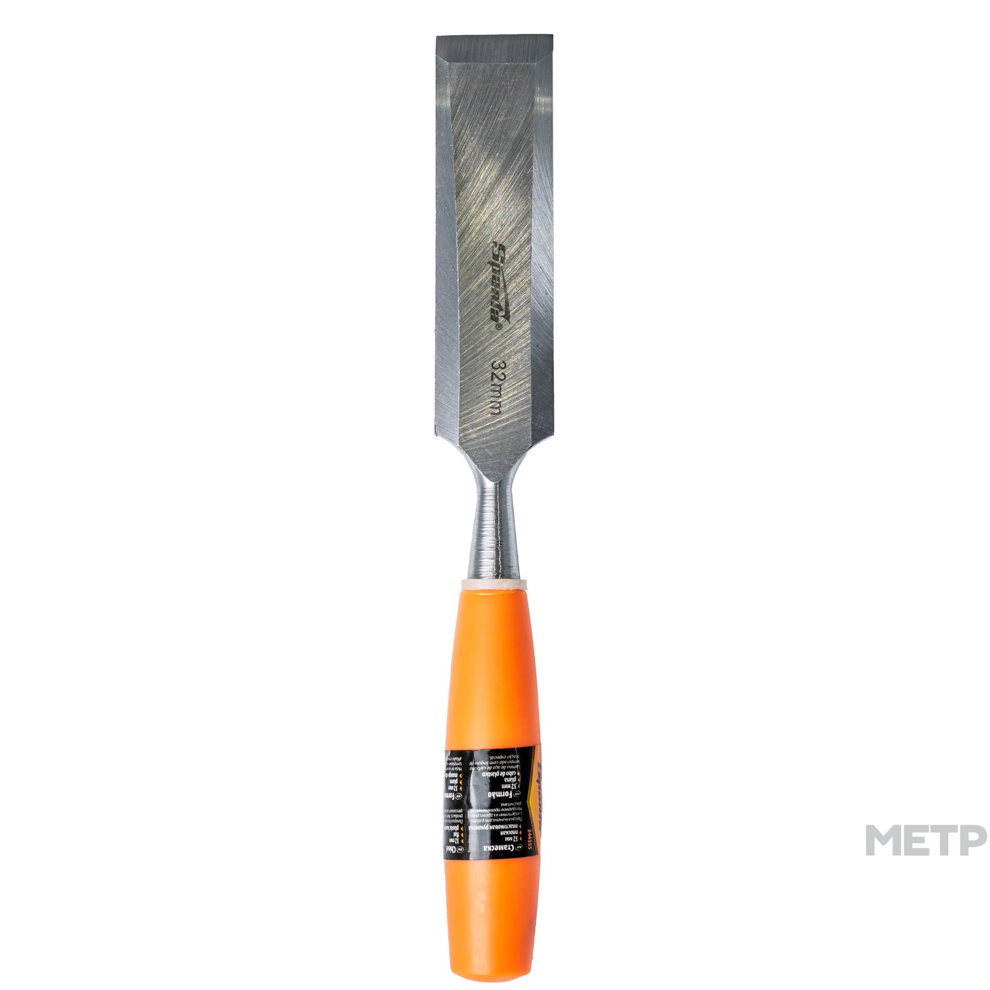 Стамеска 32 мм Sparta с пластиковой ручкой плоской формы, надежной рабочей частью (сталь). Качественный инструмент, простой в использовании и долговечный. Эта стамеска может храниться на даче, не подвержена воздействию высокой влажности. Изделие подходит для применения по необходимости.