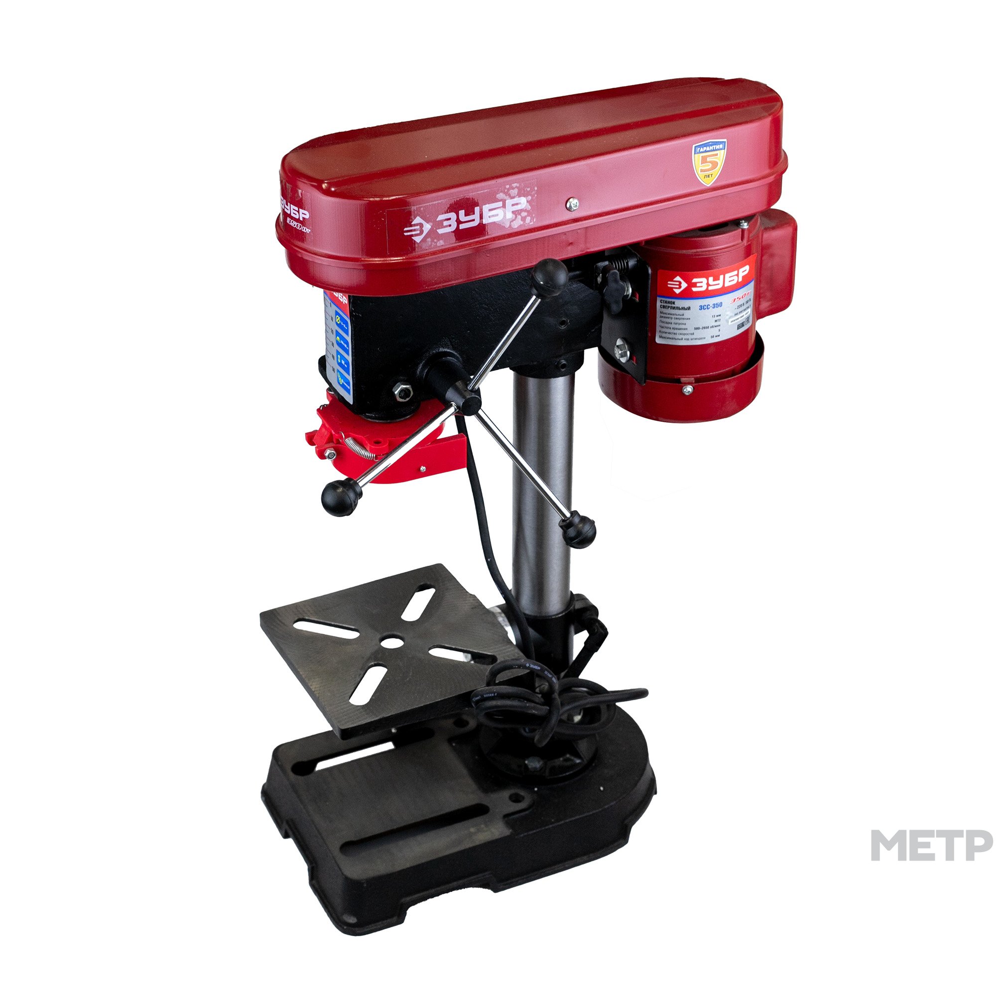 Станок сверлильный Зубр ЗСС-350 350 Вт займет почетное место в вашем гараже или мастерской! Позволит с высокой скоростью и точностью делать отверстия в заготовках из различных материалов, при установке соответствующих сверл. Распространяется расширенная гарантия до 5 лет при регистрации на сайте производителя. В комплекте поставляется набор ключей для сборки и обслуживания, а также тиски для удержания заготовок.