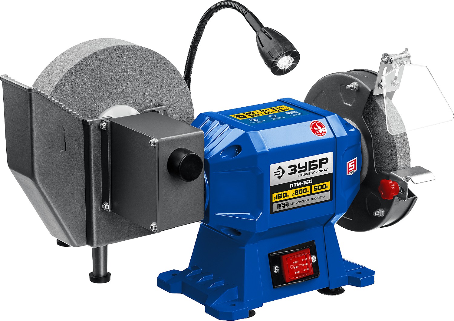 Станок заточный ПТМ-150 500Вт 150х20х32мм Зубр - это незаменимый инструмент для гаража, мастерской, используемый для заточки режущего инструмента и сухого/мокрого шлифования металлических заготовок. Простота конструкции, высокая надежность, компактный размер, два камня с разной зернистостью, возможность мокрого шлифования – все что нужно для настоящего мастера, ценящего качество и рассчитывающего на долгий срок службы.