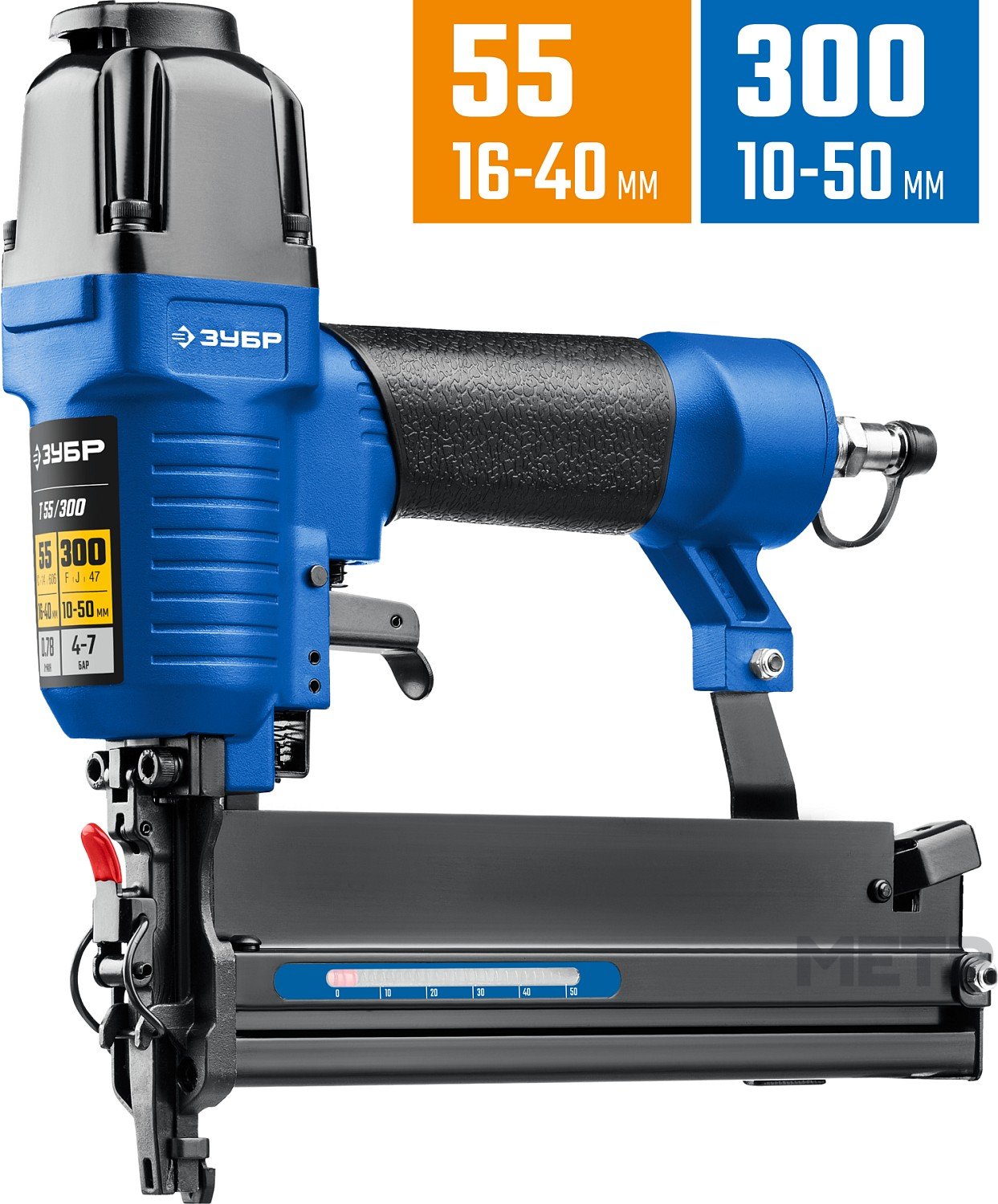 Пневматический нейлер-степлер 2-в-1 для скоб и гвоздей ЗУБР Т55/300 31937 представляет собой универсальный пневматический инструмент 2-в-1, который работает с гвоздями и скобами. Оснащен индикатором остатка расходных материалов в магазине. Для удобства хвата предусмотрена обрезиненная рукоятка.