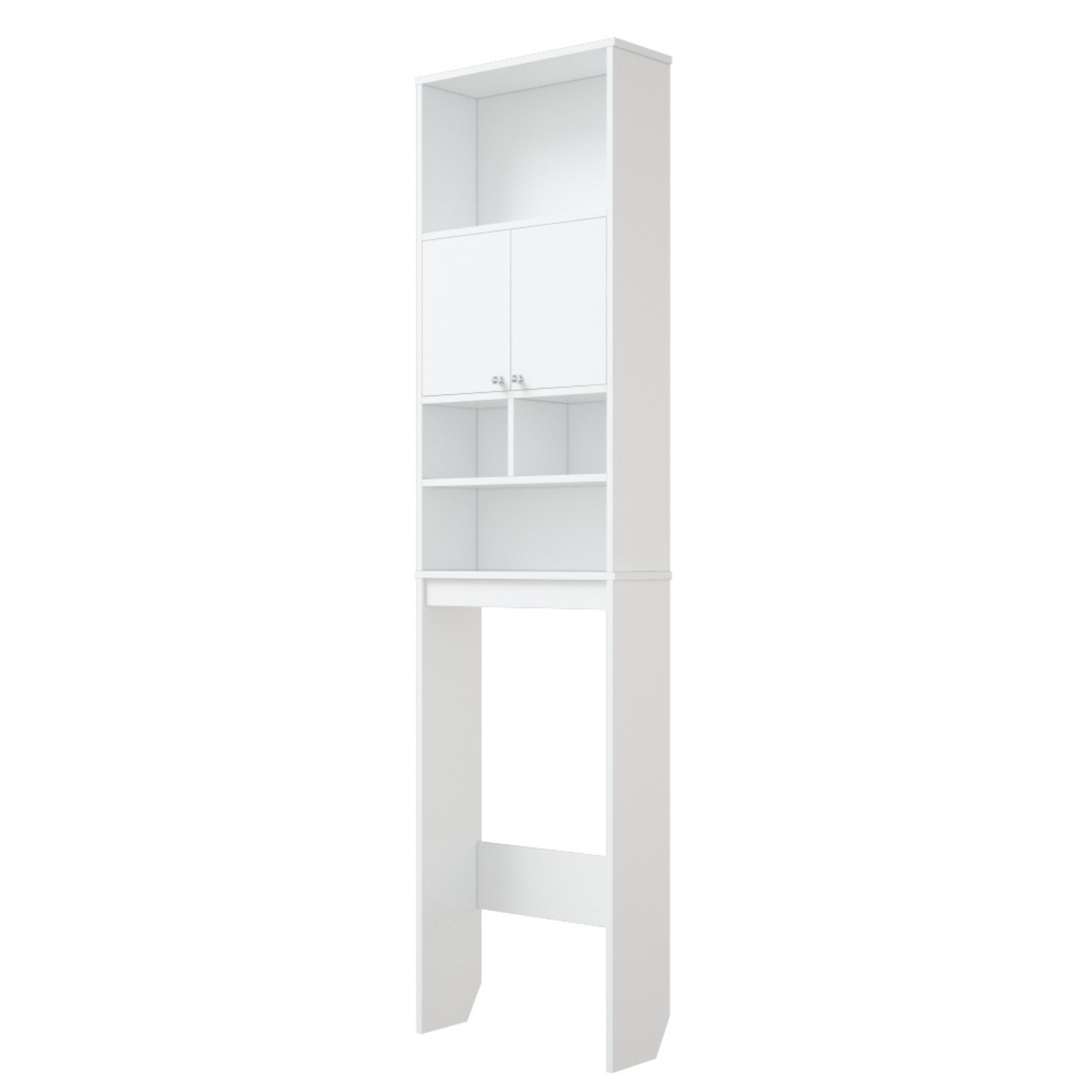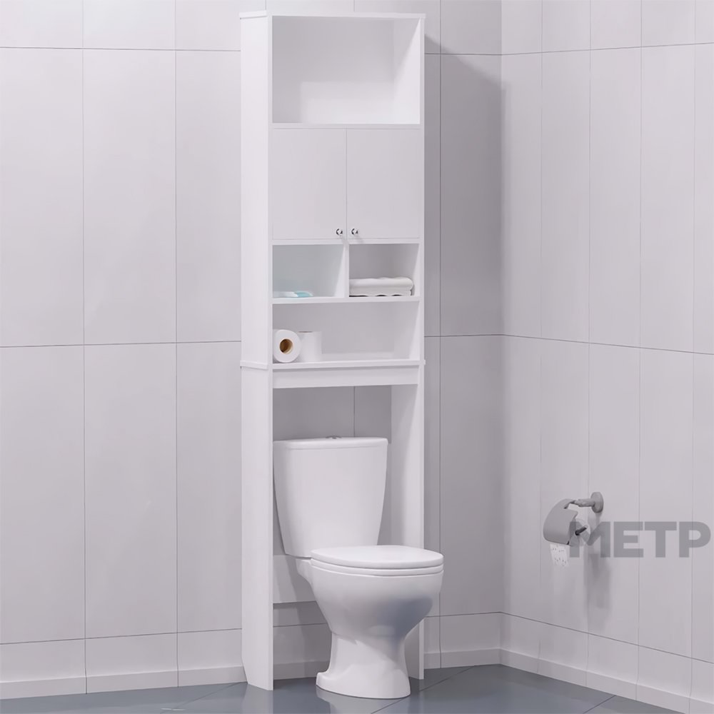 Устанавливается за и над унитазом. В верхней части расположены открытые полки и полки закрытые распашными дверцами. В нижней высокие боковины. В зависимости от расположения труб и коммуникаций, нижнюю царгу можно регулировать по высоте. Осуществляется крепление к стене на мебельные подвесы.