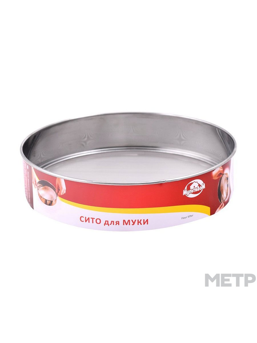 Сито Мультидом 19 см. Сито диаметром 19 см предназначено для просеивания муки. Металлическое сито с мелкой сеткой и ободом изготовлено из нержавеющей стали, предотвращающей коррозию. После использования необходимо промыть сито в теплой воде, при необходимости с жидкими моющими средствами.