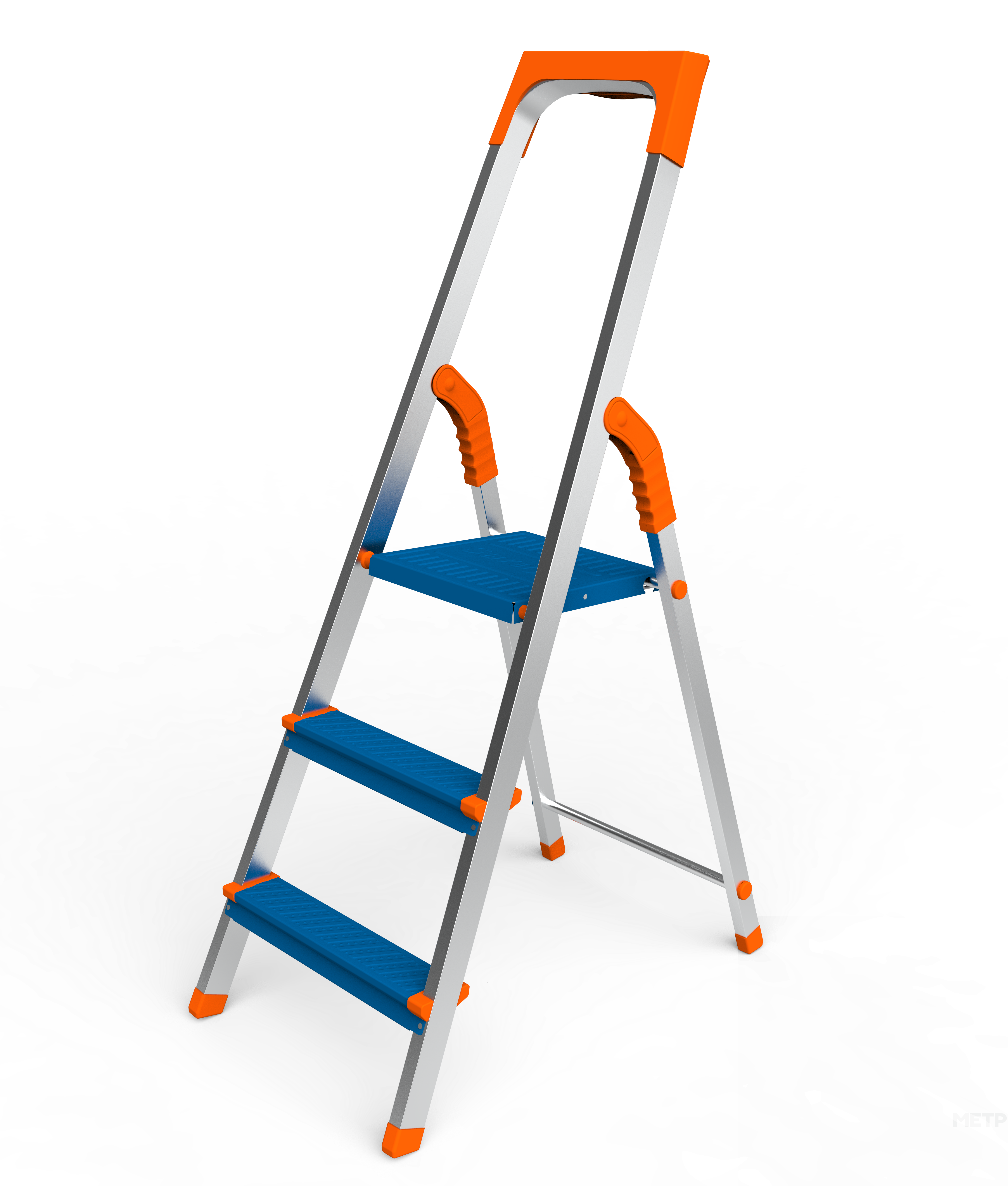 Комбинированная стремянка с противоскользящими ножками, удобной верхней площадкой и широкими стальными ступенями.