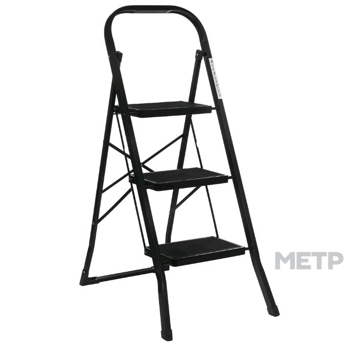 Стремянка имеет антискользящее покрытие благодаря полимерным коврикам на ступенях. Подходит для бытового и профессионального применения. Железная конструкция и прочное основание обеспечивают мастеру устойчивость. Складная конструкция обеспечивает легкую транспортировку изделия.