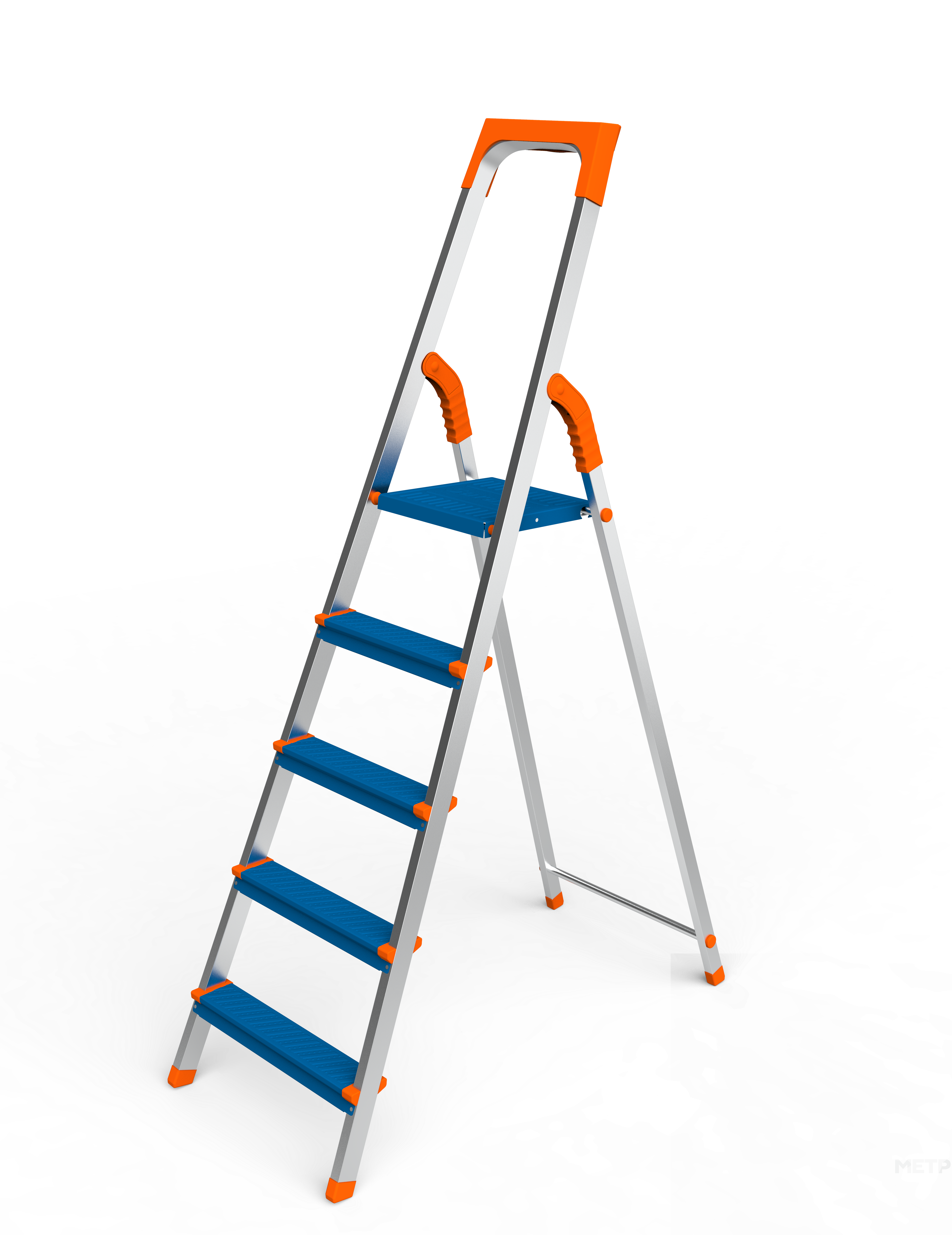 Комбинированная стремянка с противоскользящими ножками, удобной верхней площадкой и широкими стальными ступенями.