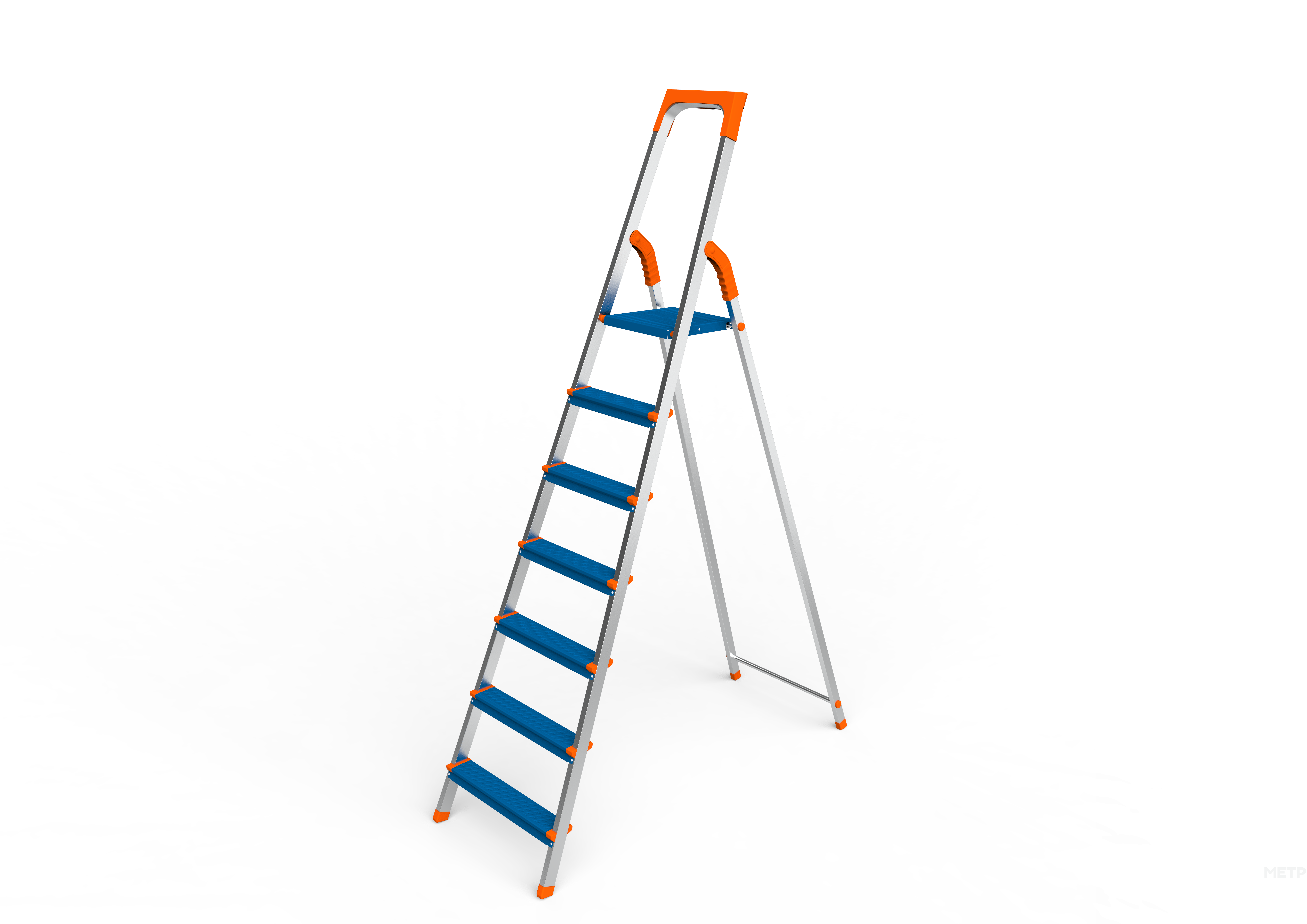 Комбинированная стремянка с противоскользящими ножками, удобной верхней площадкой и широкими стальными ступенями.