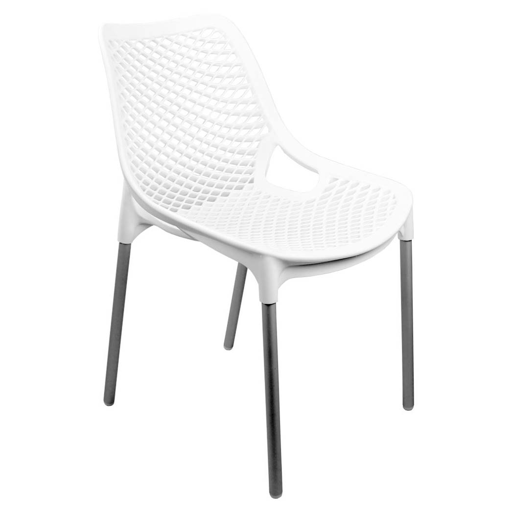 Стул садовый Эврика 45х60х77,5см цвет белый изготовлен из полипропилена, ножки выполнены из алюминия. Это обеспечивает прочность и безопасность при использовании. На конце ножек расположены специальные вставки для предотвращения царапин. Мебель немного весит, что делает транспортировку комфортной и быстрой.
