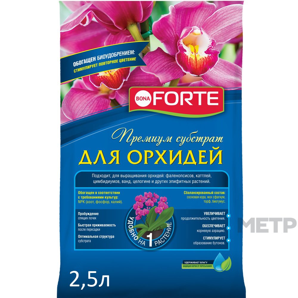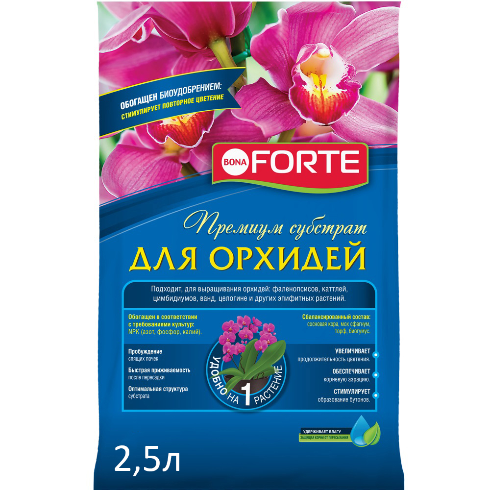 Субстрат Орхидея Bone Forte 2,5 л – специально разработанный и готовый к использованию комплекс для выращивания орхидей всех сортов. Включает в состав необходимый комплекс минералов и микроэлементов, необходимых для роста и правильного развития растений.