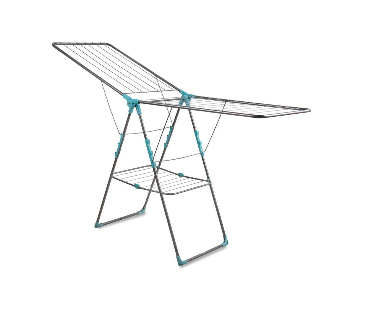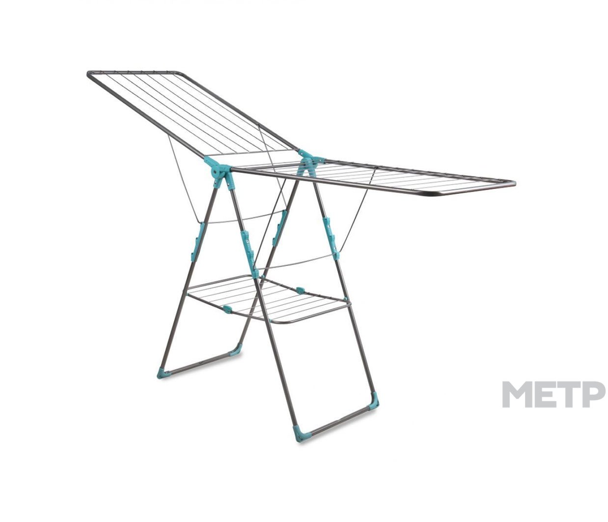 Сушилка с удобной полкой, устойчива, имеет пластмассовые наконечники. На распашных створках прутья расположены продольно и поперечно. Антикоррозийное покрытие струн.