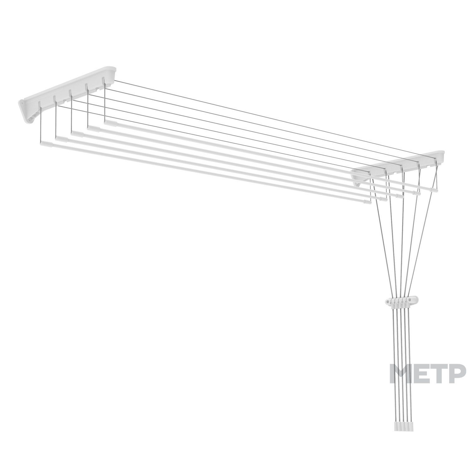 Компактная, подвесная настенно-потолочная сушилка для белья идеально подходит для любых помещений. Удобный лифт механизм значительно облегчает процесс развешивания белья.