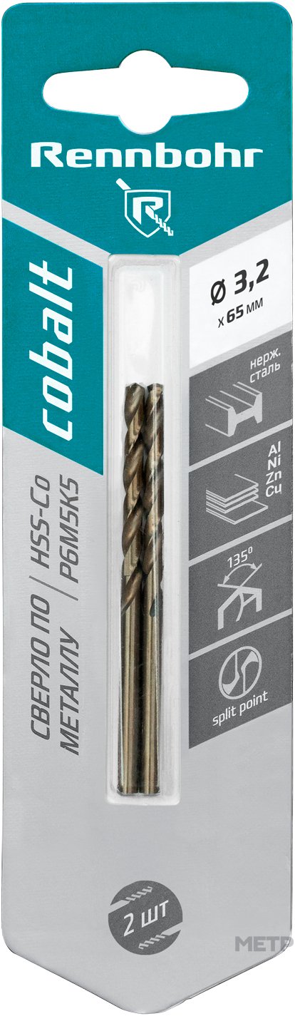 Сверло 3,2х65мм по металлу цилиндрический хвостовик HSS-CO RENNBOHR применяются для сверления отверстий в нержавеющих сталях, жаропрочных и жаростойких сталях, легированных, высокопрочных конструкционных сталях на универсальном оборудовании, специальных станках с ЧПУ и автоматических линиях. Возможно сверление отверстия глубиной более 4 диаметров без вывода сверла для удаления стружки.