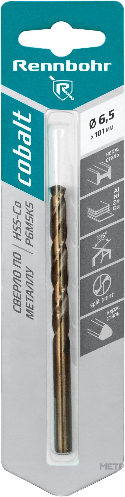 Сверло 6,5х101мм по металлу цилиндрический хвостовик HSS-CO RENNBOHR применяются для сверления отверстий в нержавеющих сталях, жаропрочных и жаростойких сталях, легированных, высокопрочных конструкционных сталях на универсальном оборудовании, специальных станках с ЧПУ и автоматических линиях. Возможно сверление отверстия глубиной более 4 диаметров без вывода сверла для удаления стружки.