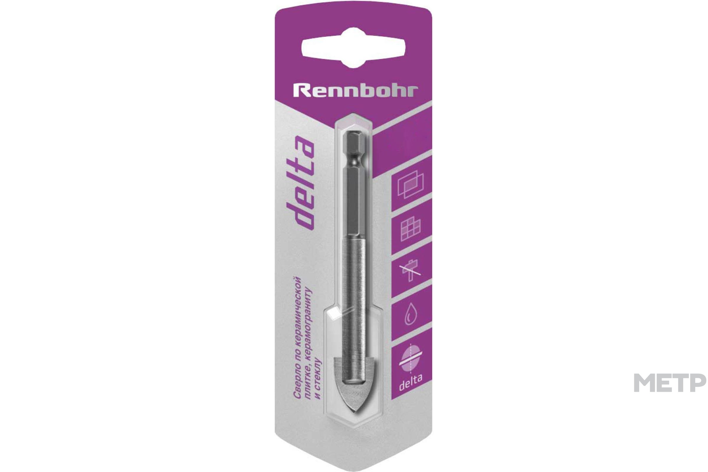 Сверло по керамике и стеклу RENNBOHR 676006 6х75 мм используется в работе по керамическим, стеклянным и кафельным поверхностям с обязательным применением водяного охлаждения. Стальное сверло имеет шестигранный хвостовик и два режущих лезвия. Подходит для бытового использования.