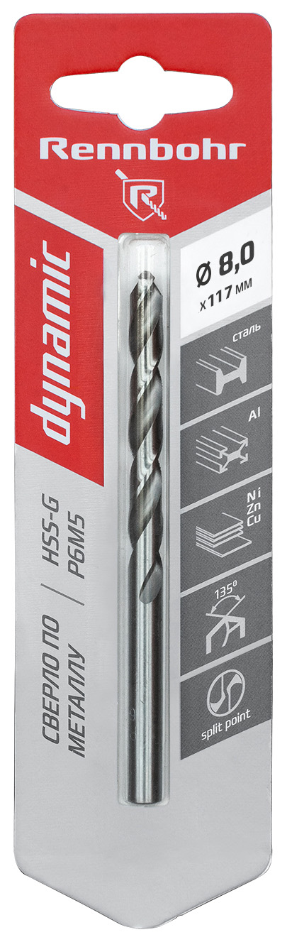 Праворежущее спиральное сверло, класс точности А1, угол 135.