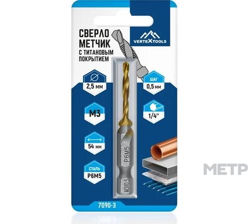 Сверло-метчик М3х0,5мм 16/54мм с титановым покрытием предназначено для создания сквозных и глухих отверстий и нарезки резьбы в легированных и нелегированных сталях, цветных металлах и чугуне.