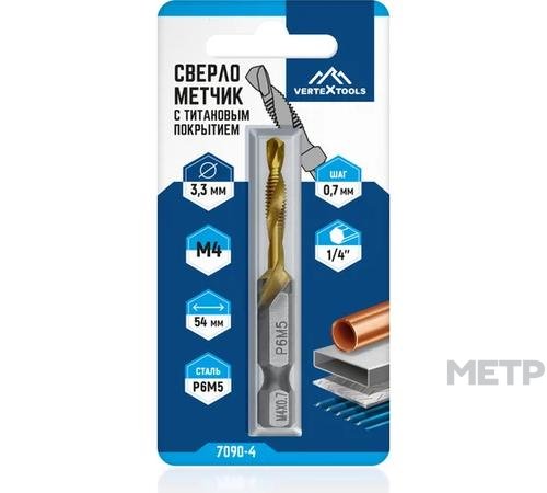 Сверло-метчик М4х0,7мм 16/54мм с титановым покрытием предназначено для создания сквозных и глухих отверстий и нарезки резьбы в легированных и нелегированных сталях, цветных металлах и чугуне.
