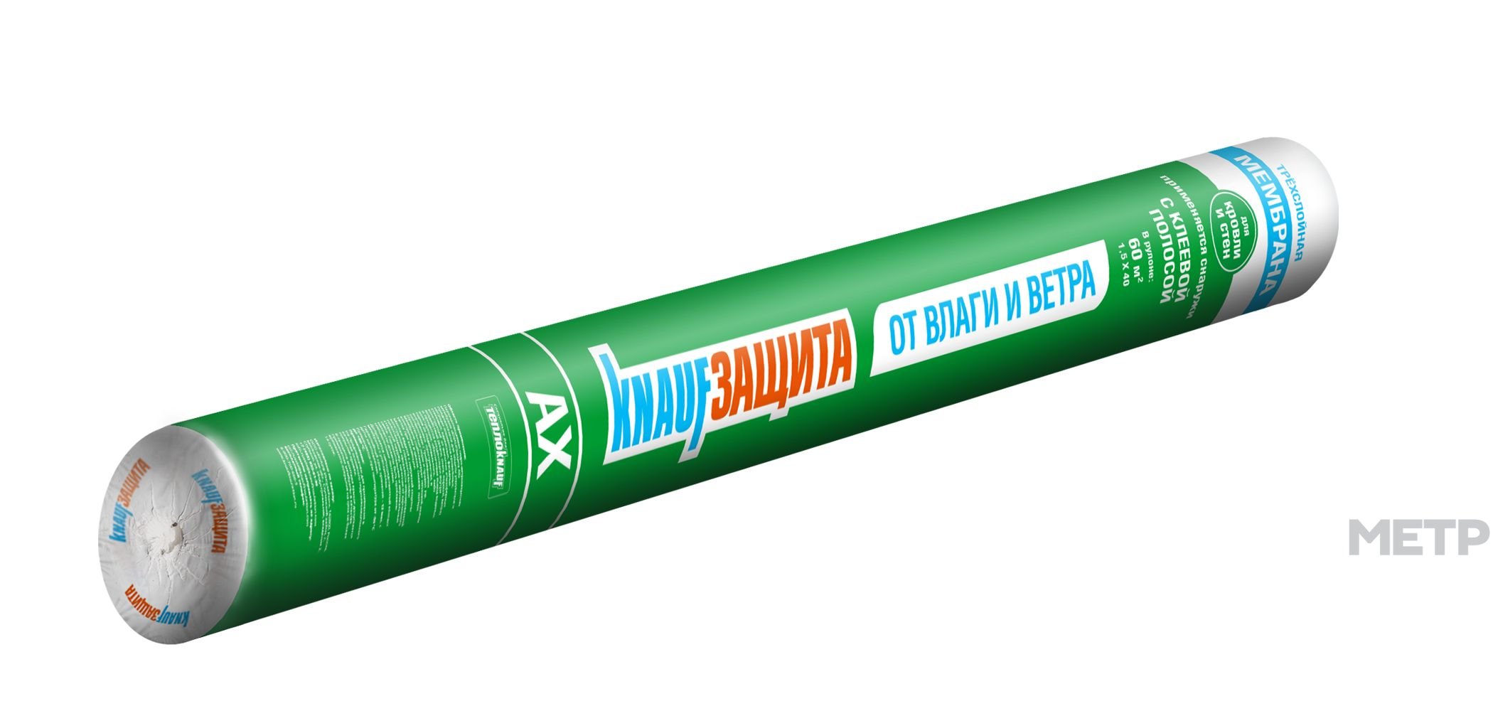 Теплоизоляционная мембрана Knauf Защита AX – влаго- и ветрозащитная супердиффузионная трехслойная мембрана с клеевой полосой. Трехслойный материал высокопрочный и оснащен клеевой полосой для удобства и сокращения времени монтажа. Высокая паропроницаемость способствует «выходу» из строительных конструкций излишней влаги.