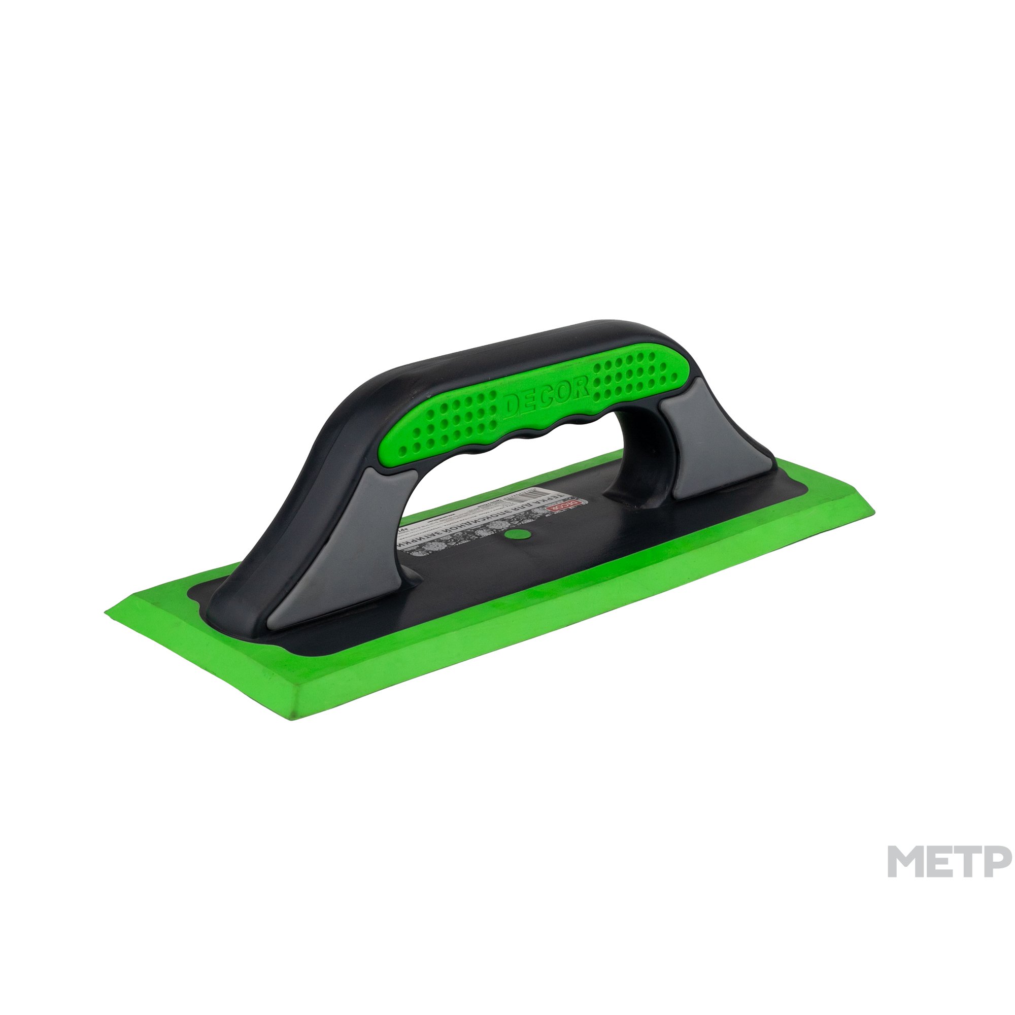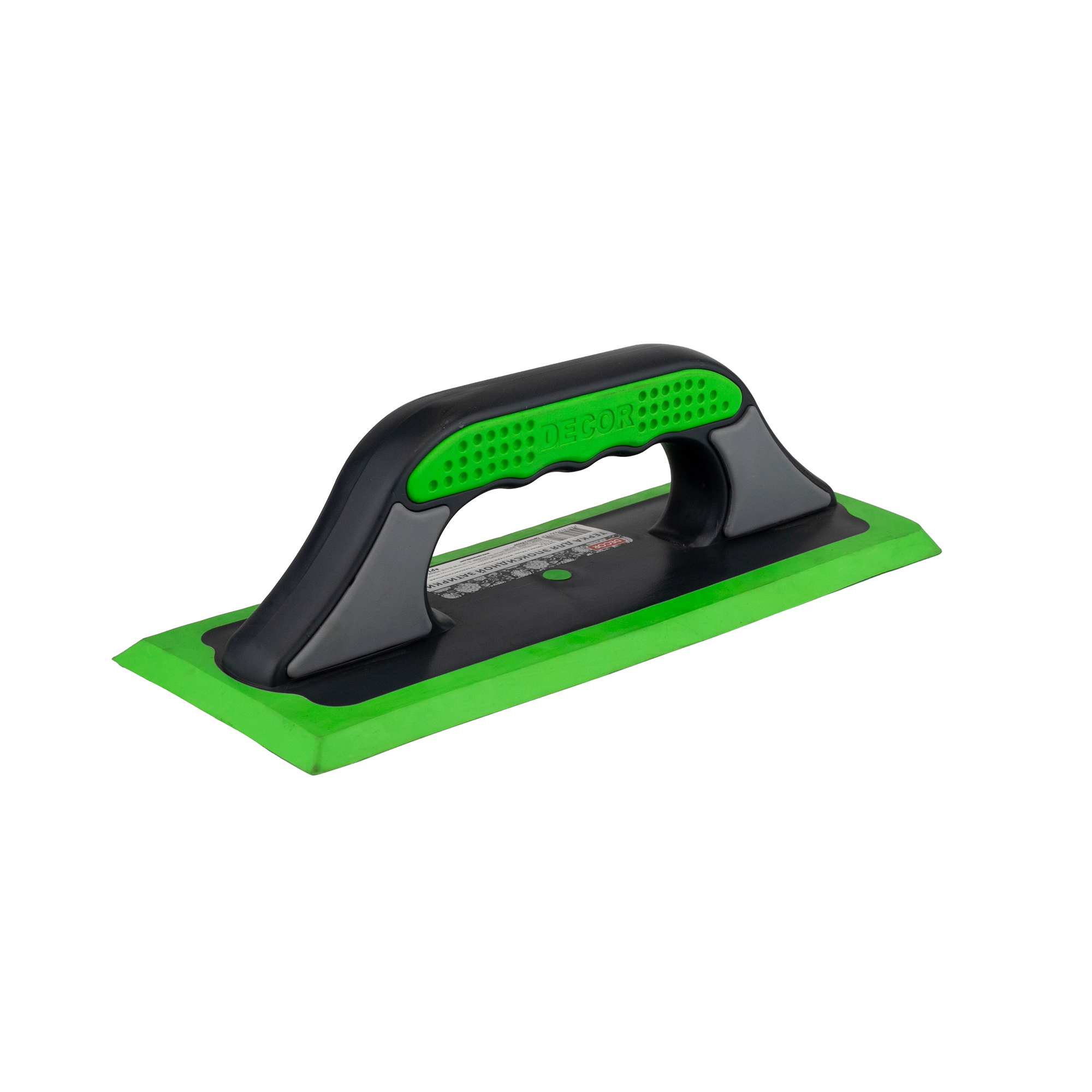 Терка трехкомпонентная ручка, жесткая зеленая резина используется для затирки плиточных швов. Резина влита в основание, что обеспечивает высокую прочность изделия. Материал устойчив к агрессивным составам и воздействию внешней среды. Благодаря увеличенной рабочей зоне, терка подходит для больших поверхностей.