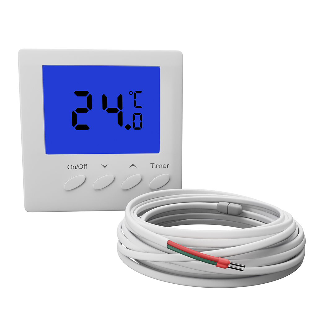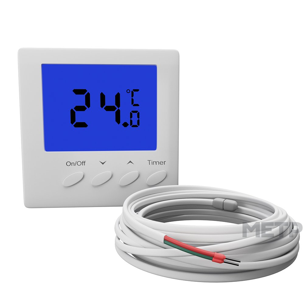 Терморегулятор Grandeks G11Н– электронный непрограммируемый терморегулятор с выносным датчиком температуры пола и встроенным датчиком воздуха. Имеет большой жидкокристаллический экран. Терморегулятор применяется для поддержания температуры во внутренних помещениях зданий. Автоматически поддерживает заданную температуру по показателям датчика пола. Имеет функцию «отложенный старт», которая позволяет установить время включения системы обогрева через заданный промежуток времени.