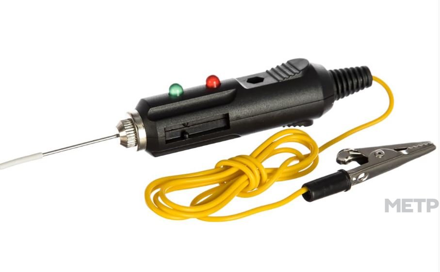 предназначен для быстрой и эффективной диагностики электрооборудования автомобилей. Позволяет определить полярность напряжения (+/-), выявить замыкание и обрыв проводки без необходимости размыкать проводку - за счет возможности ввести тонкую иглу непосредственно через изоляцию в проводку или проверить предохранители, лампочки и диоды. Корпус выполнен из ударопрочного пластика и снабжен проводом с зажимом типа «крокодил», светодиодным и звуковым индикатором.