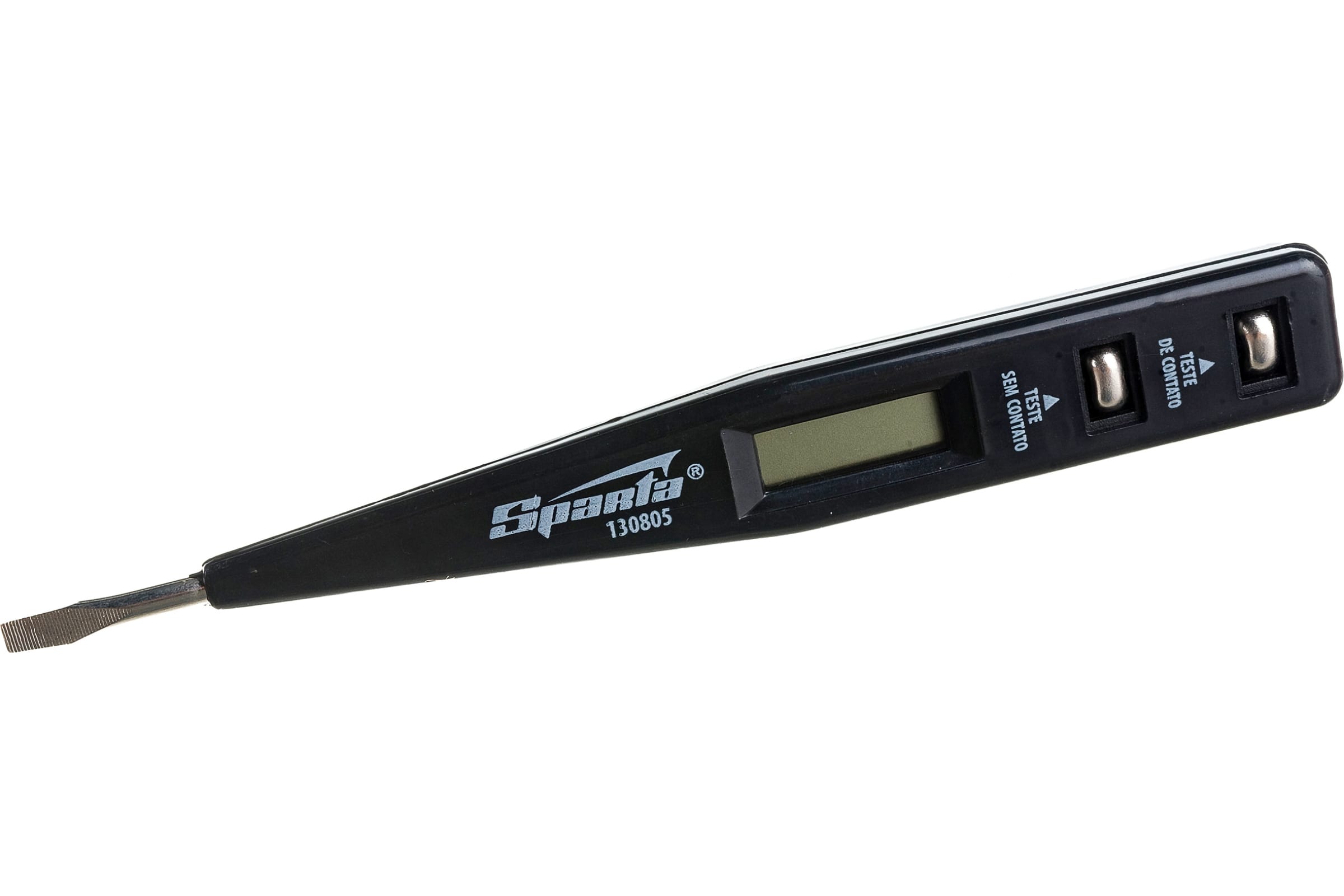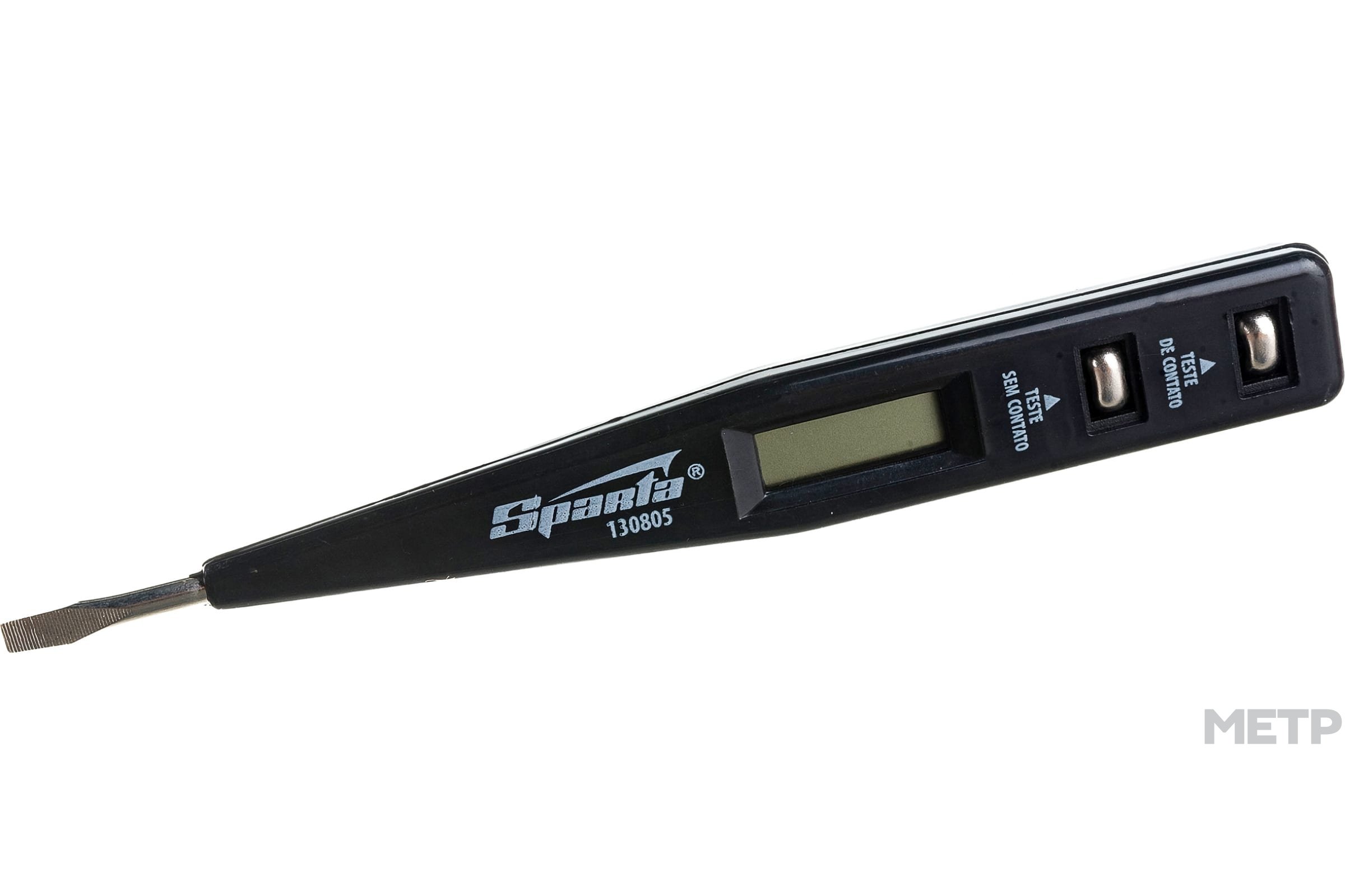 Тестер напряжения с ЖК дисплеем Sparta пластик — с этим устройством с прямым шлицем чрезвычайно удобно проверить бытовую электросеть, работоспособность аккумуляторов и батареек, проводку на предмет обрывов. Эргономичная рукоять покрыта диэлектриком и оснащена встроенным жидкокристаллическим экраном с прекрасно читаемыми данными.