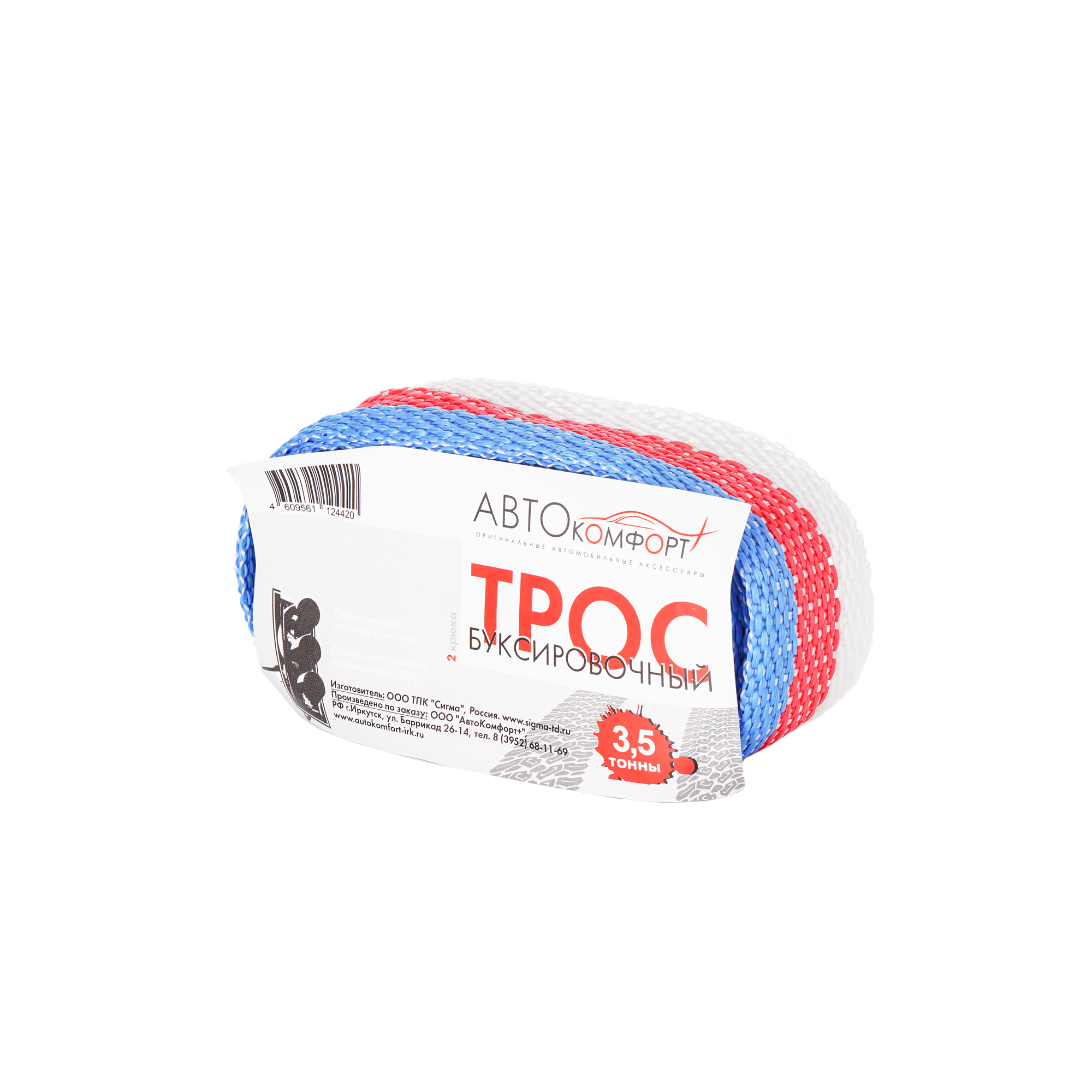 Трос буксировочный Сигма 5 м 3,5 т повышенной прочности должен быть у каждого автовладельца. Крепится к автомобилю стальными крюками, подойдет как для легковых автомобилей, так и для малых грузовиков. Отличная страховка от непредвиденных обстоятельств!