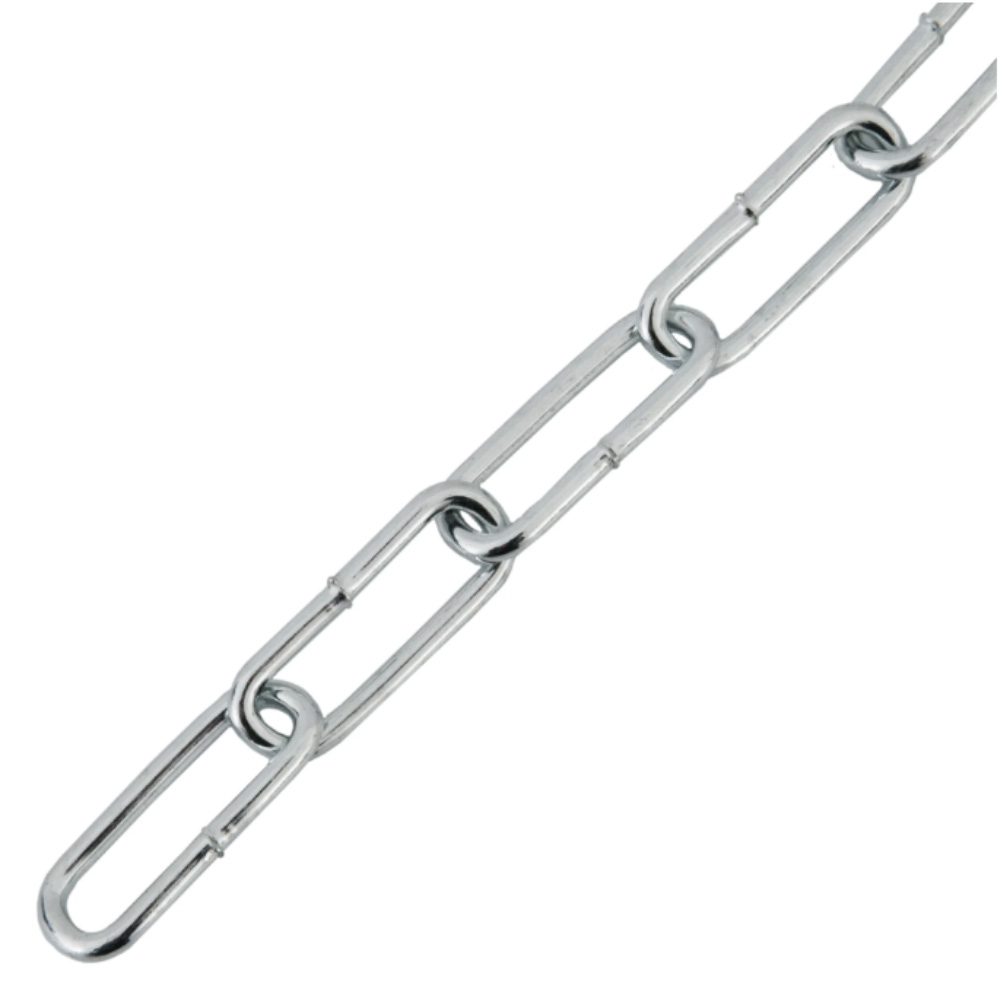 Цепь длиннозвенная 2 мм применяется в строительстве и быту для крепления неответственных конструкций (подвески, растяжки и пр.). Не предназначена для грузоподъемных работ и выдерживания ударных нагрузок. Цепь имеет малый коэффициент растяжения и большую степень свободы, ограниченную одним звеном. За счет большой длины звена можно легко отрегулировать цепь по длине и сделать петлю методом звено в звено. Размер цепи соответствует диаметру поперечного сечения проволоки, применяемой при вязке.