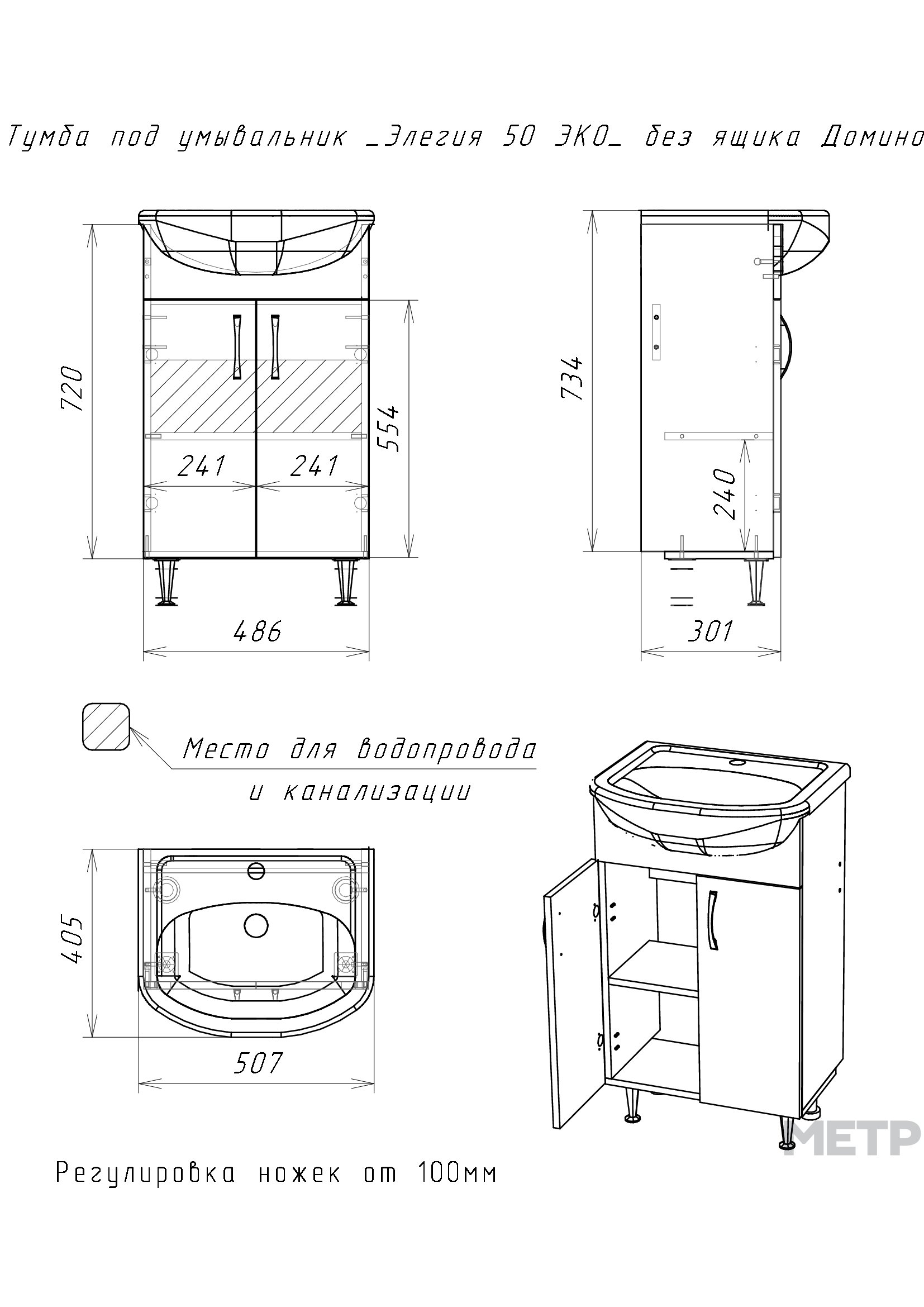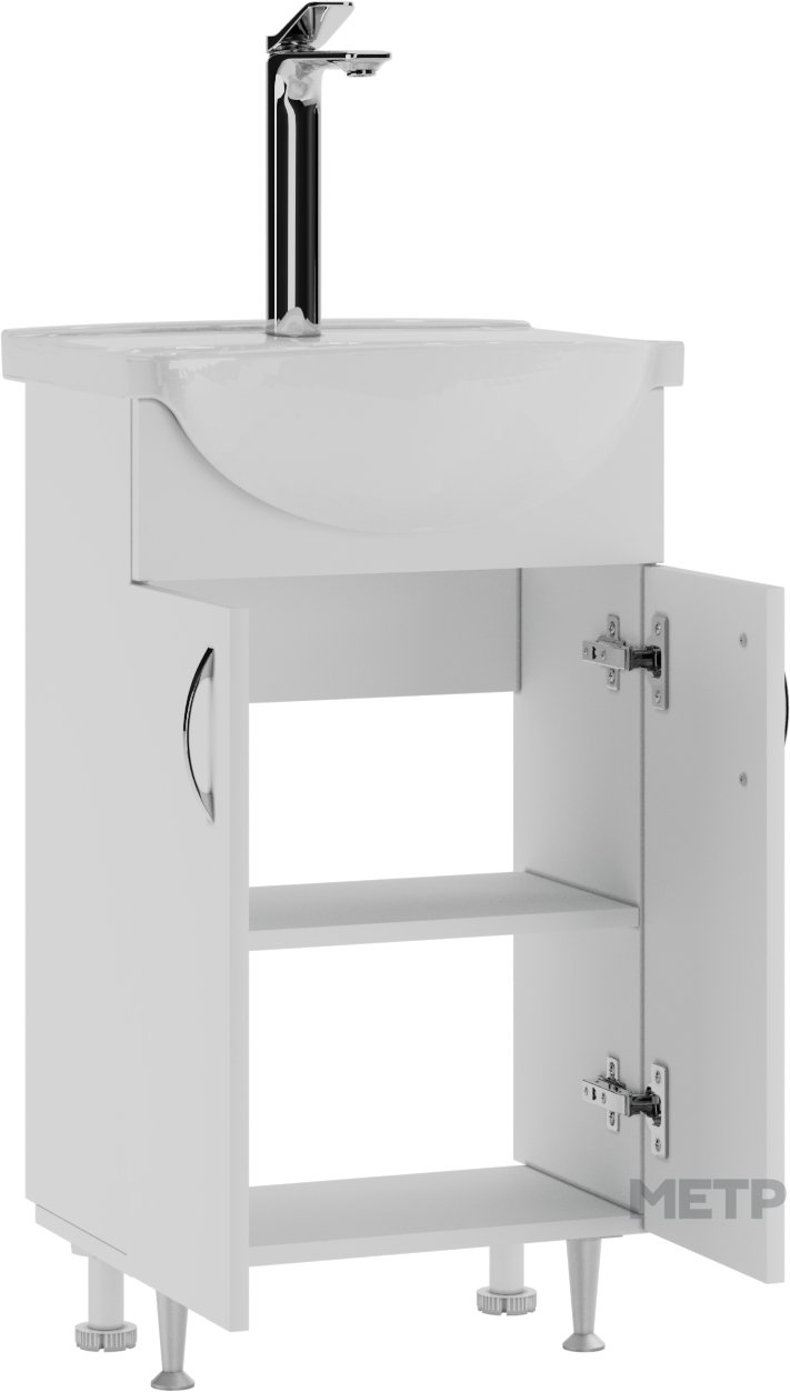 Тумба Элегия 50 ЭКО без ящика Домино - напольная, предназначена для ванных комнат. Раковина продается отдельно. Тумба представлена в разобранном виде. В комплект входит фурнитура, паспорт.