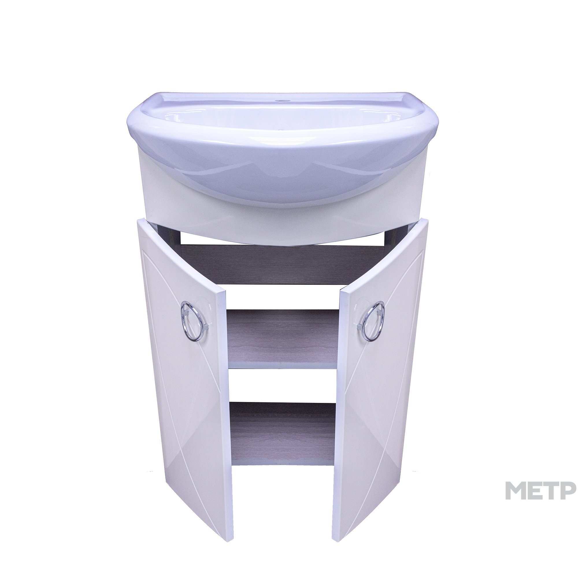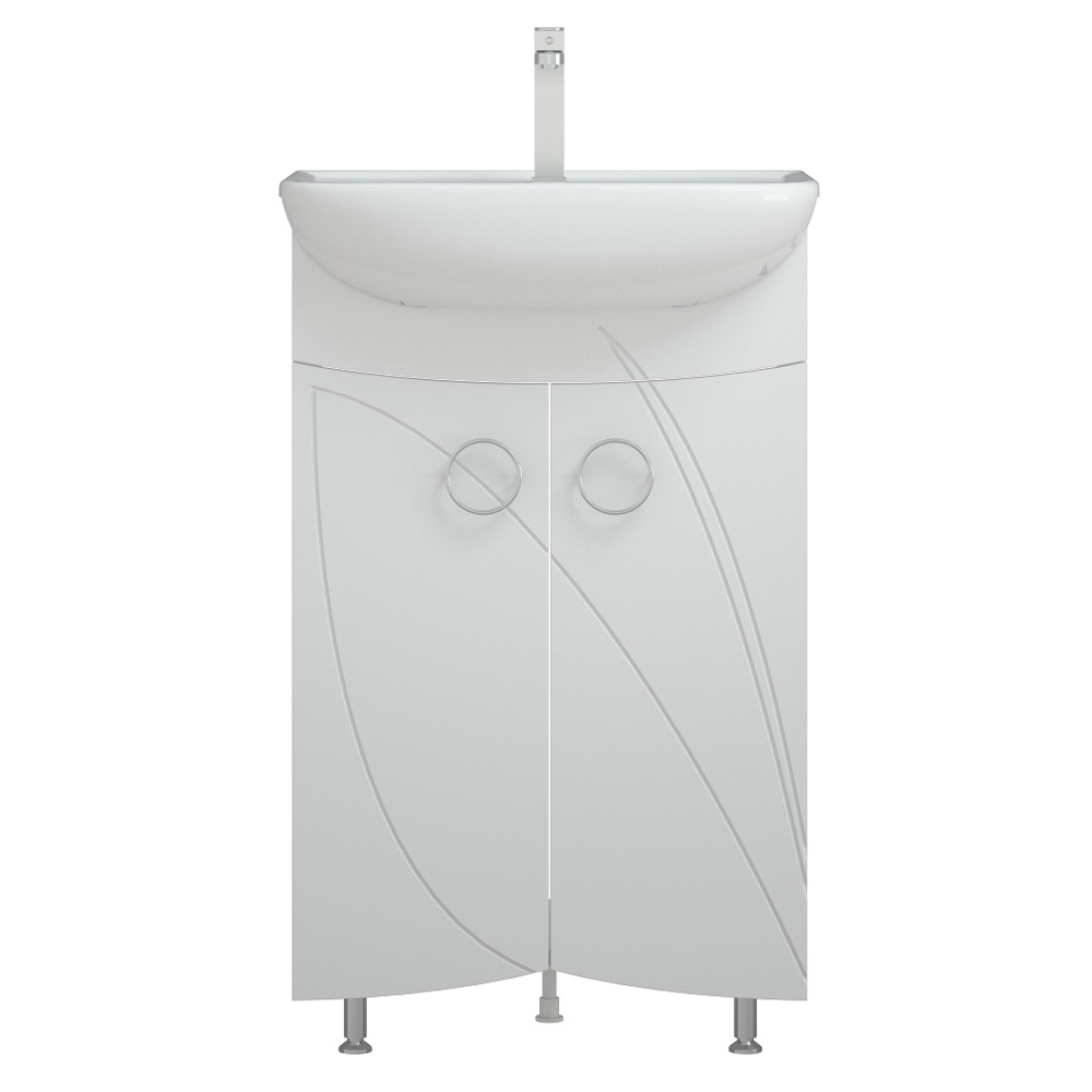 Тумба Koral Флора напольная 55см белый устанавливается на три хромированные опоры. Фасад модели украшен гравировкой, напоминающей линии растений, и дополнен двумя круглыми ручками. Универсальный белый цвет и компактный размер отлично впишется в любую ванную. Закрытая система хранения имеет разделение на две полки, что позволяет вместить больше предметов. При производстве использовались мдф и лдсп. Для установки подходит раковина Уют 55.
