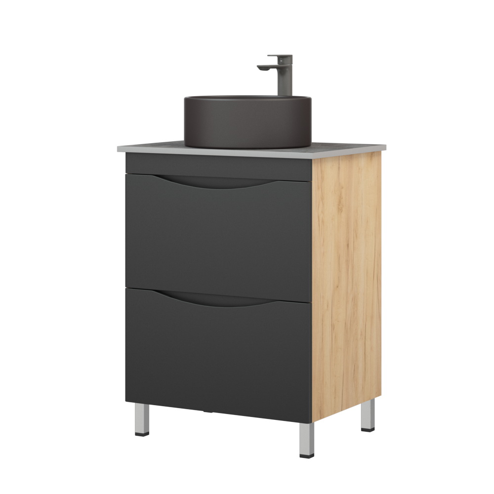 Простоту форм коллекции ЛИАНА дополняют плавные линии интегрированных ручек и мягкое скругление по краям фасадов, плавно перетекающее в боковины. Тумба оснащена двумя выдвижными ящиками. Верхний ящик тумбы разделен на две части с отверстием под коммуникации.