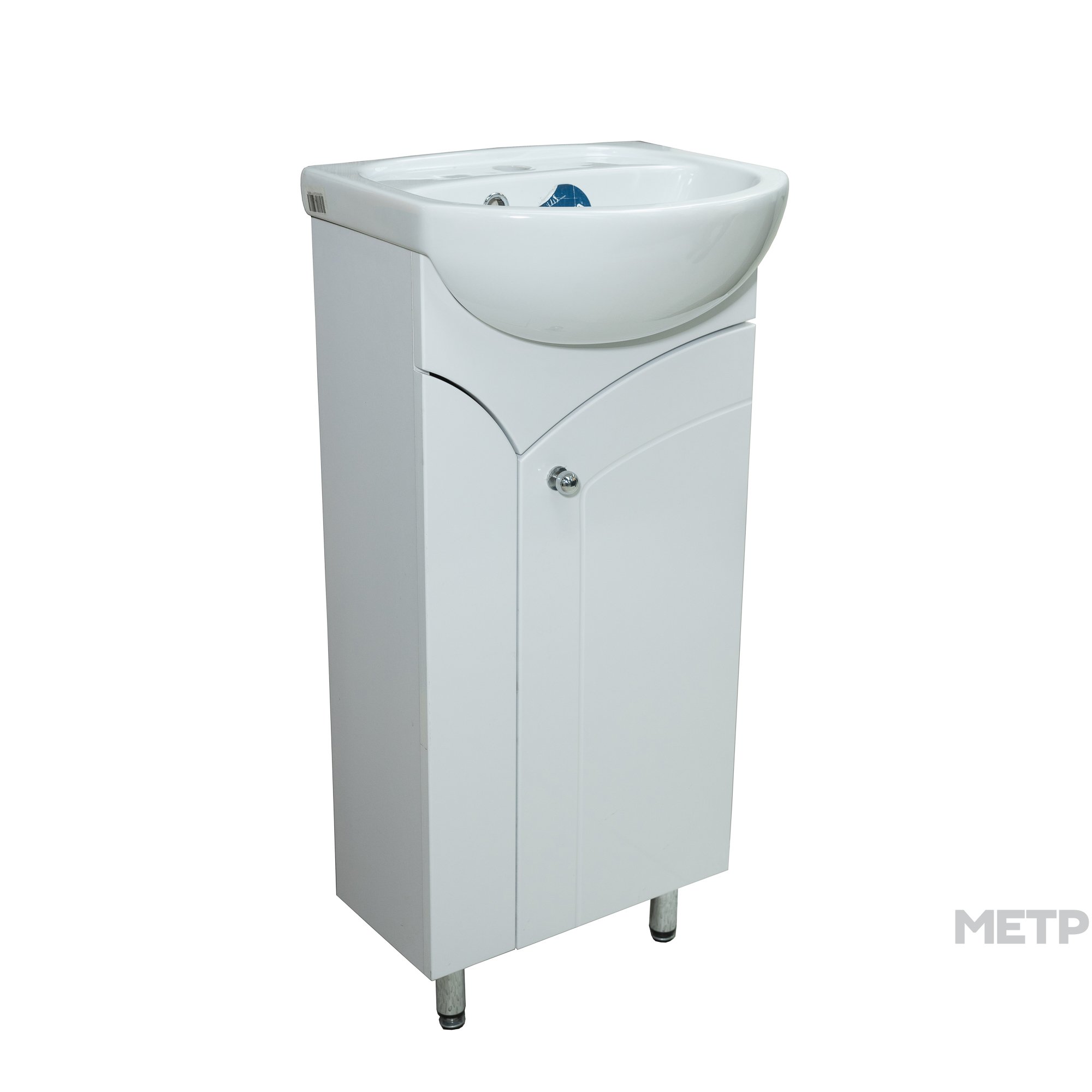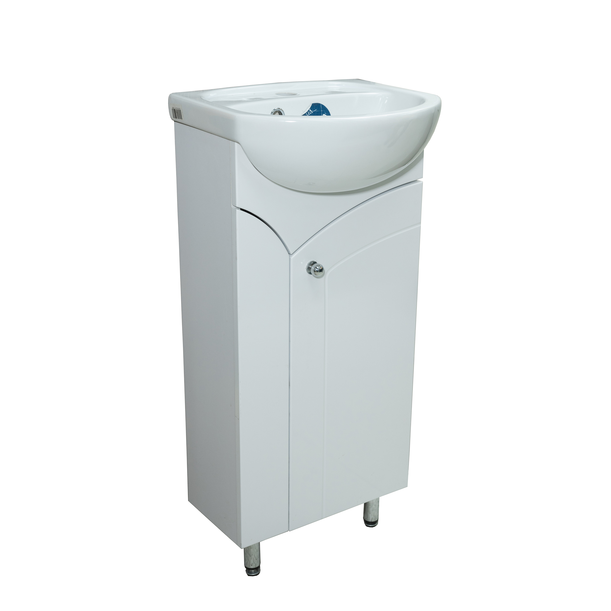 Тумба Koral Манго напольная 40см белый с плавными закругленными линиями на дверцах имеет элегантный внешний вид. Максимально компактный размер оптимально подойдет миниатюрной ванной, а удобные полки вместят все необходимое. Модель устанавливается на пол на три опоры. Материал корпуса и фасада лдсп и мдф соответственно. Подходящим комплектом станет умывальник Манго 40.
