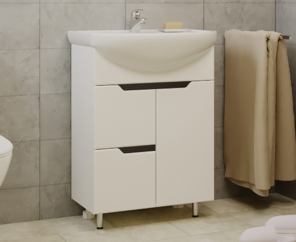 Тумба под раковину в ванную комнату, сочетающая стильный внешний вид и практичность в использовании. К этой тумбе отлично подойдет Раковина KIROVIT Элеганс 600 мм, артикул b185268. Обязательно посмотрите наш каталог с раковинами!
