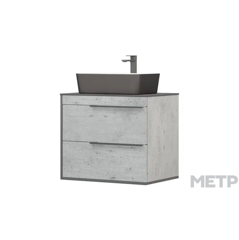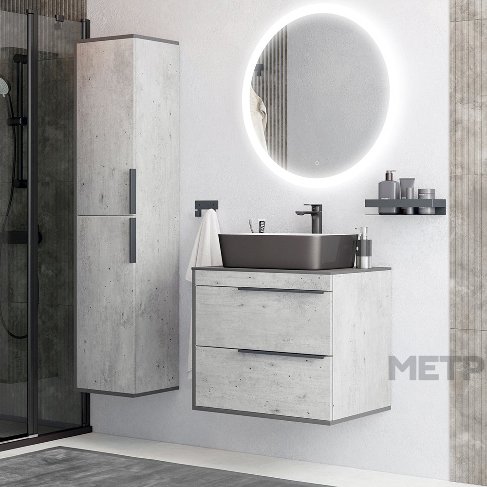 Коллекция мебели для ванных комнат ГРЭММИ воспевает ассиметричный дизайн, универсальные оттенки и удобство в эксплуатации. Корпус мебели выполнен в цвете "Метрополитан Грэй". Металлические ручки на фасадах выполнены в черном цвете и гармонируют с черной кромкой по бокам и снизу фасадов. Верхний ящик тумбы разделен на две части с отверстием под коммуникации. Все элементы коллекции представлены в навесном варианте, могут дополнительно комплектоваться опорами в черном цвете.