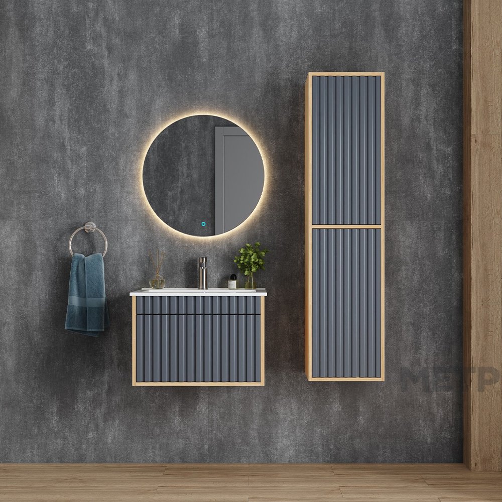 Рифленый серый матовый фасад с покрытием SoftTouch и корпус цвета дуба с роскошной текстурой подчеркнет изысканный вкус владельца и станет центральным элементом декора.