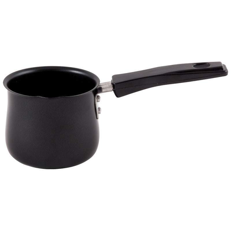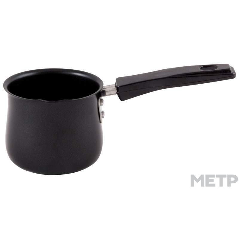Турка 490 мл с пластиковой ручкой изготовлена из нержавеющей стали. Имеется специальный носик для удобного наполнения кружек ароматным напитком. Рекомендуется использовать на малом и среднем огне. Подходит для мытья в посудомоечной машине. Страна изготовитель Китай.