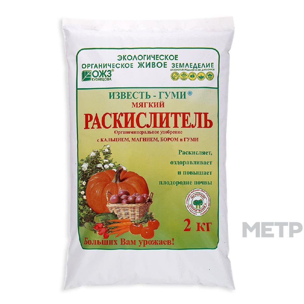 Удобрение Известь Гуми Раскислитель 2000г универсальный органоминеральный комплекс с кальцием, магнием, бором и гуми. Применяется для снижения кислотности почв, повышая их плодородие. Состав: MgCO3 и CaCO3- 45%, N-02%; P2O5-0,4%; K2O-0,2%; B-520-880 мг/кг.