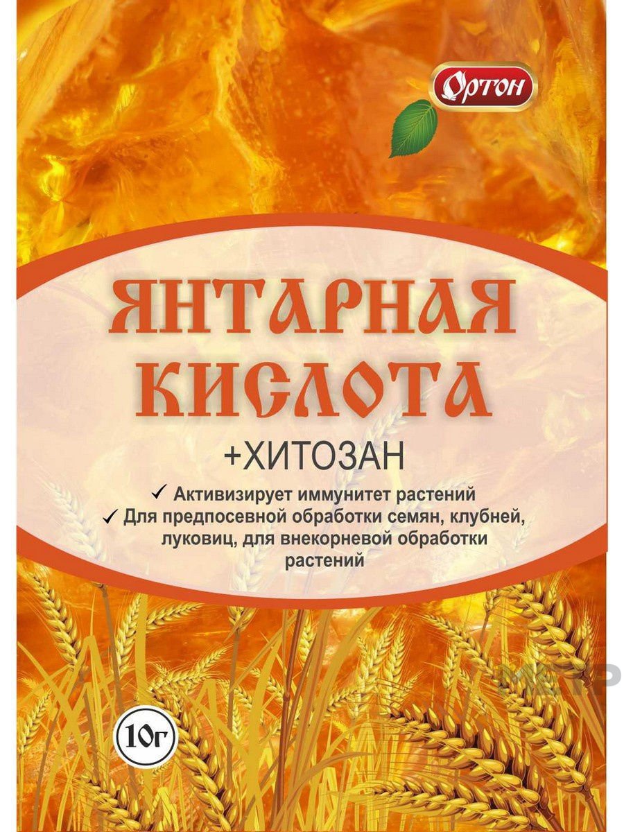 Удобрение Ортон Янтарная кислота 10г природный регулятор роста. Применяется для всех садово-огородных культур. Стимулирует корнеобразование, улучшает приживаемость рассады при пересадках. Увеличивает урожайность и качество продукции. Оказывает общеукрепляющее действие на все растение. Состав: 50г/кг янтарной кислоты, сукцинат хитозана.