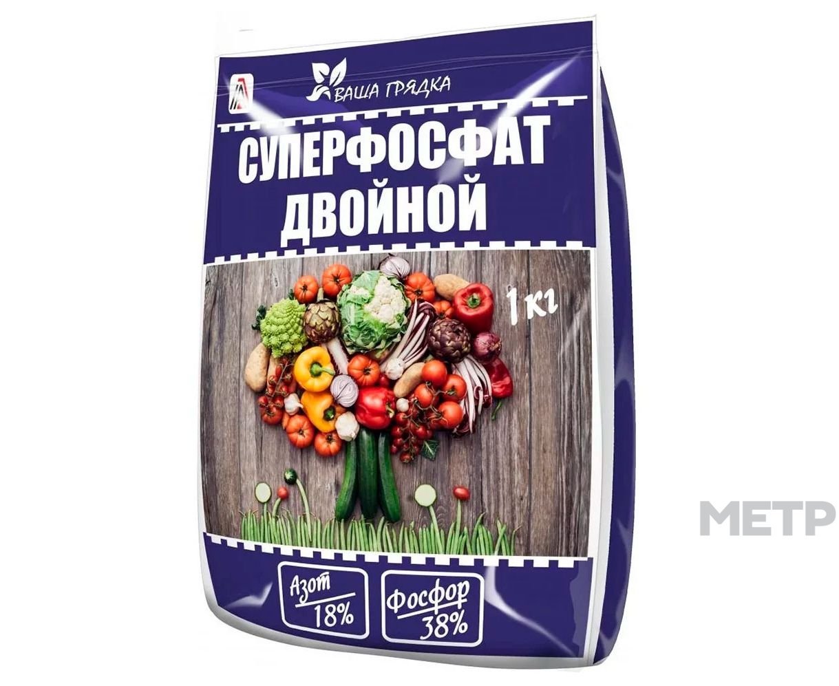 Удобрение Ваша грядка Суперфосфат двойной 1000г с высоким содержанием фосфора, применяется для всех сельскохозяйственных и декоративных культур. Стимулирует рост корневой системы, способствует полноценному развитию растений, увеличивает урожайность. Состав: N-18%, P-38%.