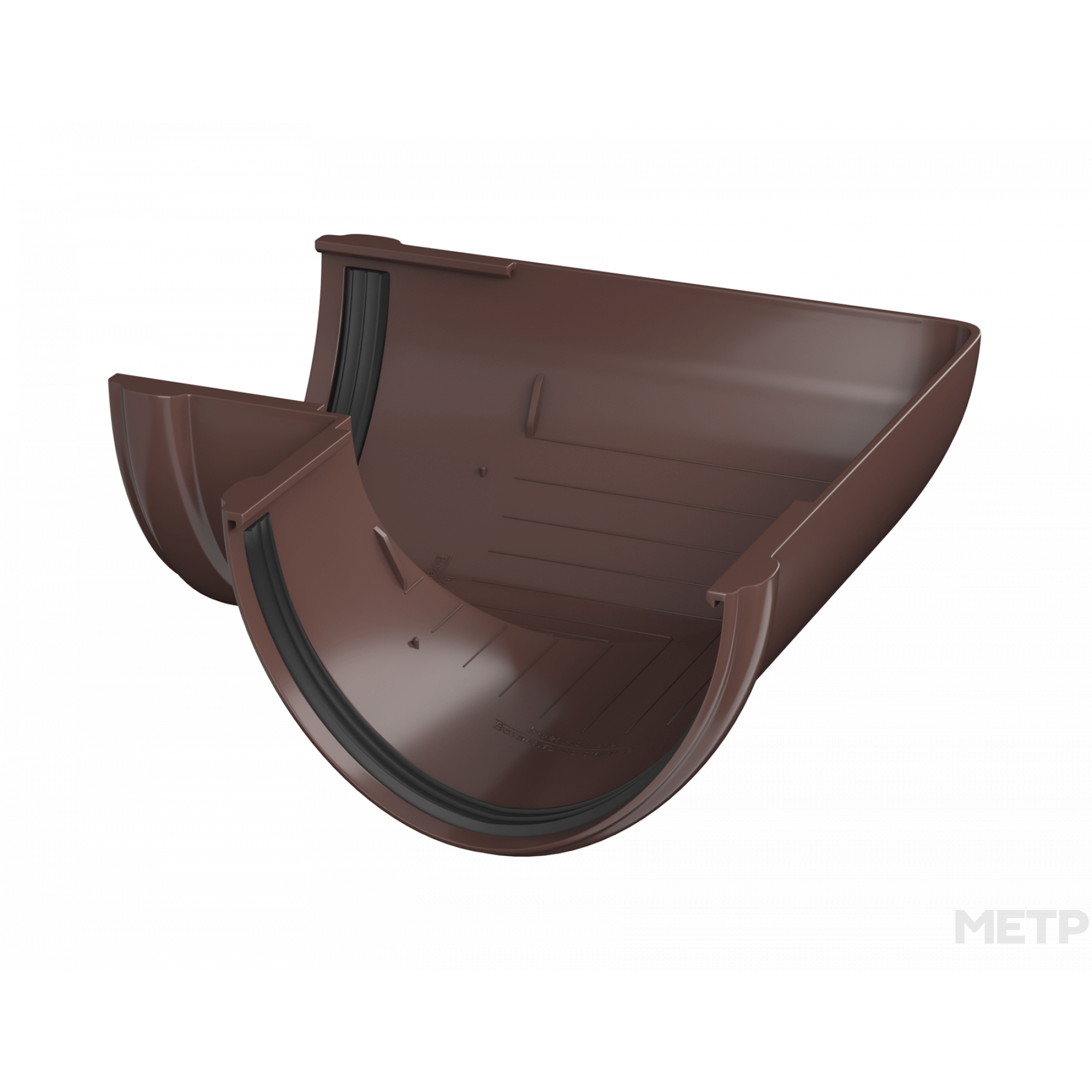 Угол желоба устанавливается на внешних и внутренних углах кровли и предназначен для соединения желобов под углом 90 градусов в целях изменения направления движения воды.