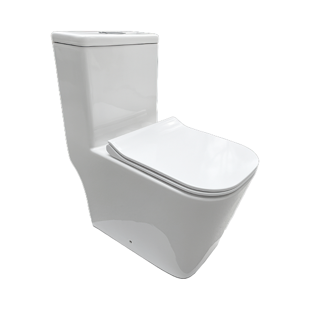 Унитаз напольный моноблок MO-8706 безободковый, выпуск горизон, сиденье из дюропласта