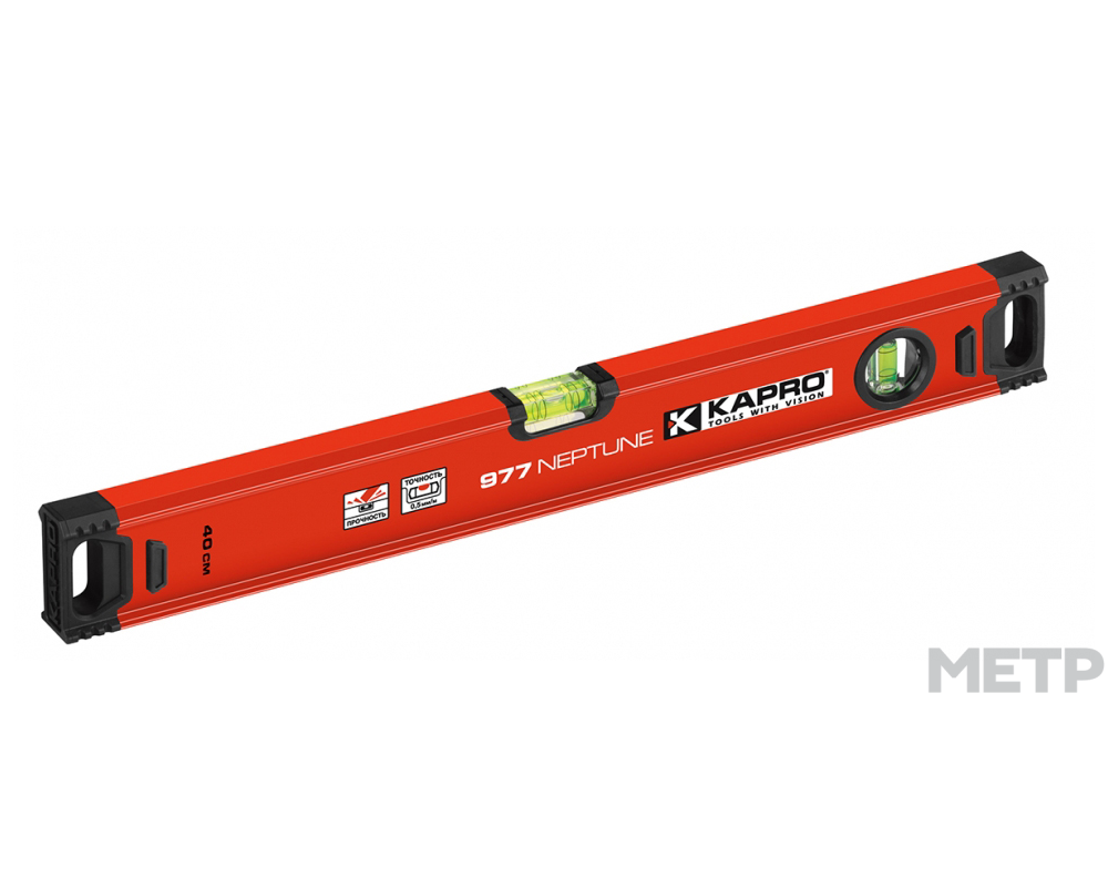Уровень это измерительный прибор длиной 40 см для определения отклонения поверхности от горизонтали или вертикали. Прибор имеет устойчивость на изгиб и кручение. Им можно работать даже в труднодоступных местах. Прибор имеет 2 глазка. Главное преимущество уровня - в ударопрочных полиакриловых колбах.